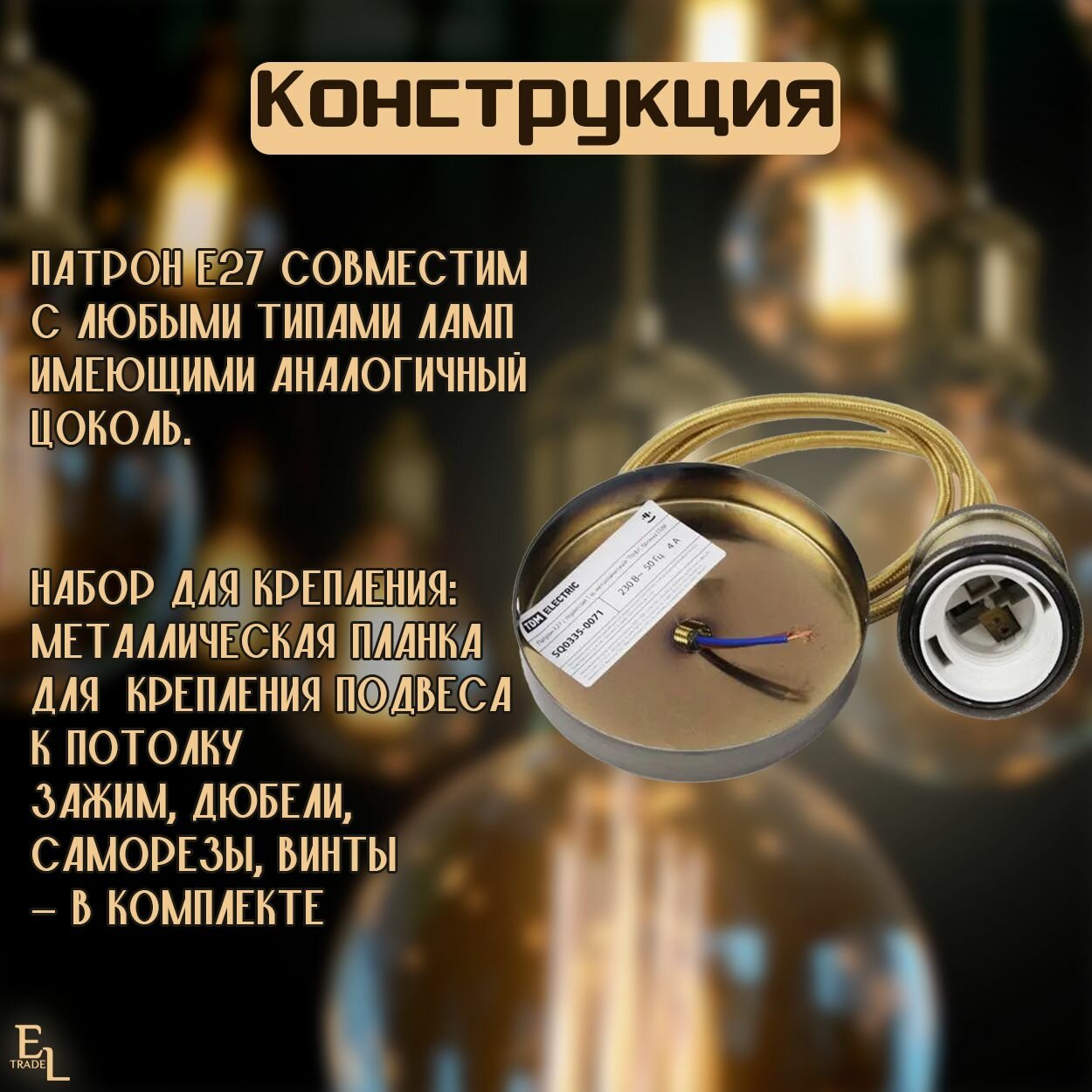 Патрон Е27 с подвесом 1 метр металлический Лофт бронза информация: