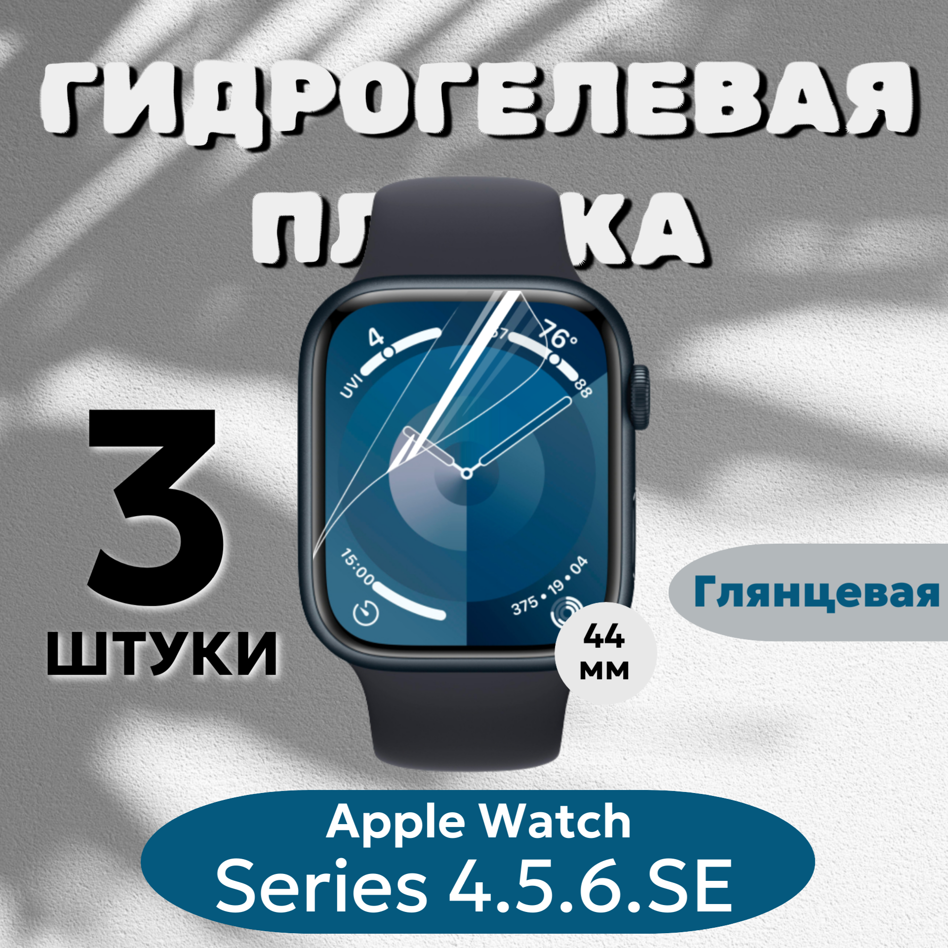 Гидрогелевая пленка Apple Watch 44мм Series 4, 5, 6, SE, SE2 полиуретановое покрытие 3шт информация: