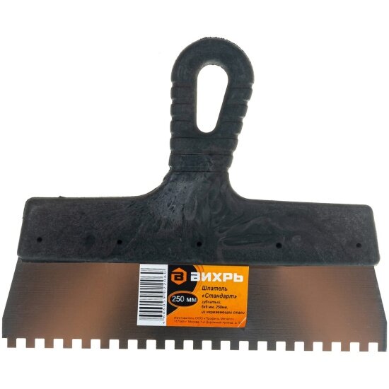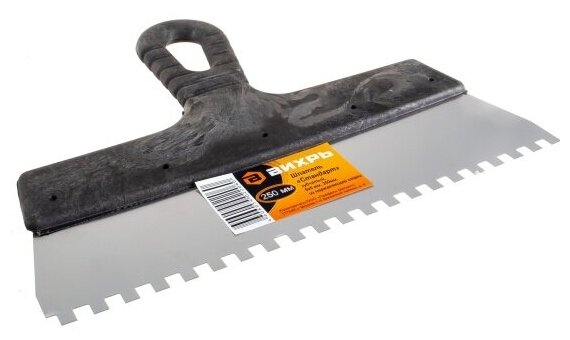 Отзывы на Шпатель Вихрь зубчатый нержавеющая cталь, пластиковая рукоятка 6х6 мм, 250мм, 73/3/2/27