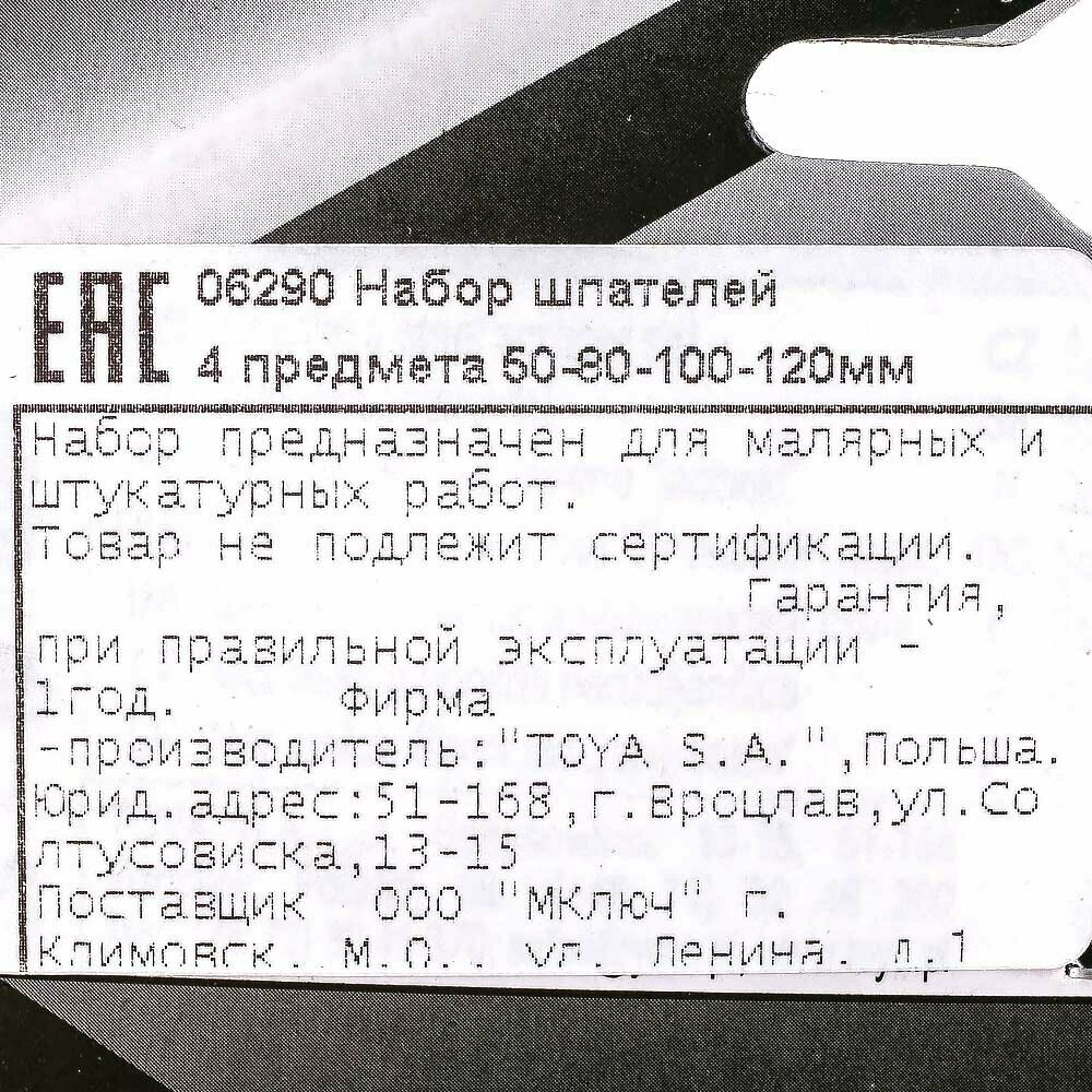 Набор шпателей VOREL нержавейка 4 шт 6290 информация: