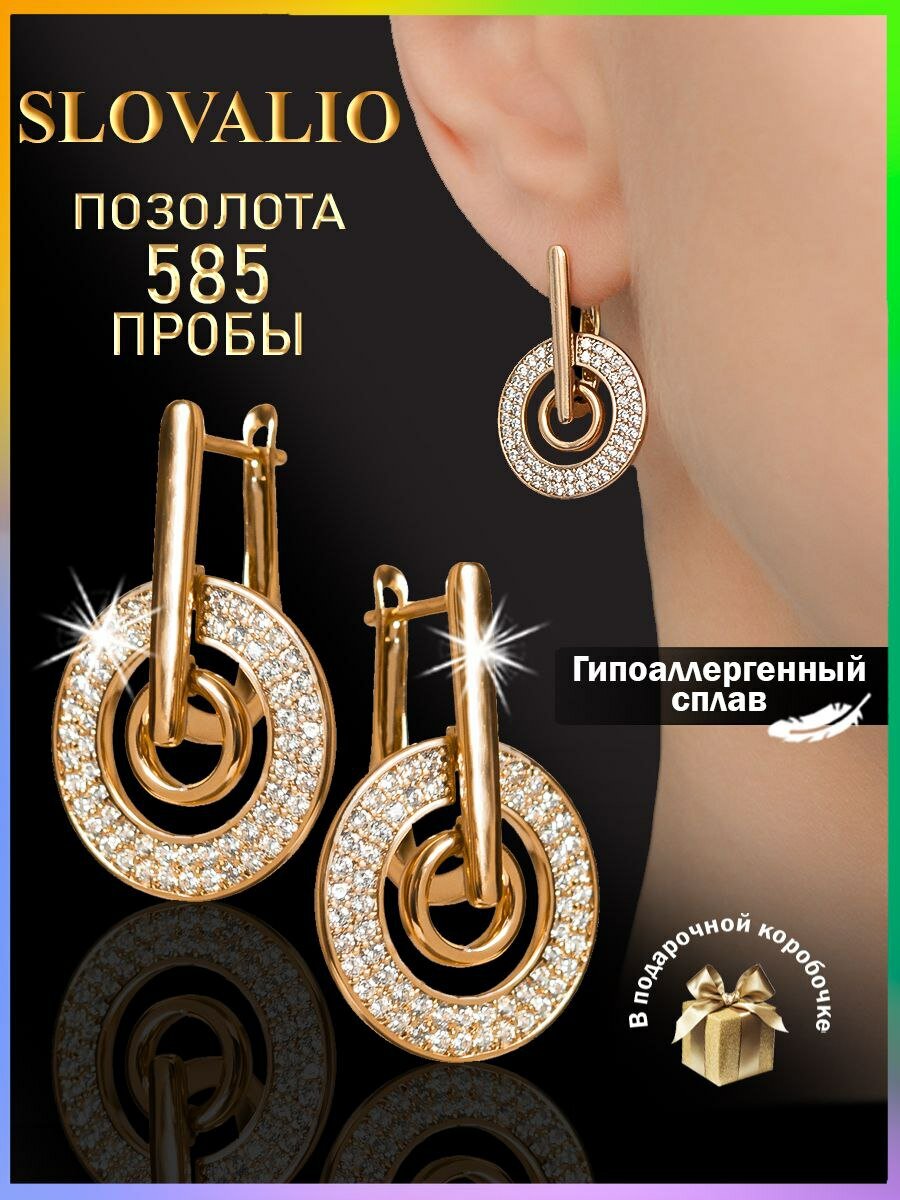 10 цен на Серьги бижутерия длинные с подвеской круг, как серьги золотые 585 с английским замком, позолоченные с камнями из медицинского сплава, ювелирный, родирование
