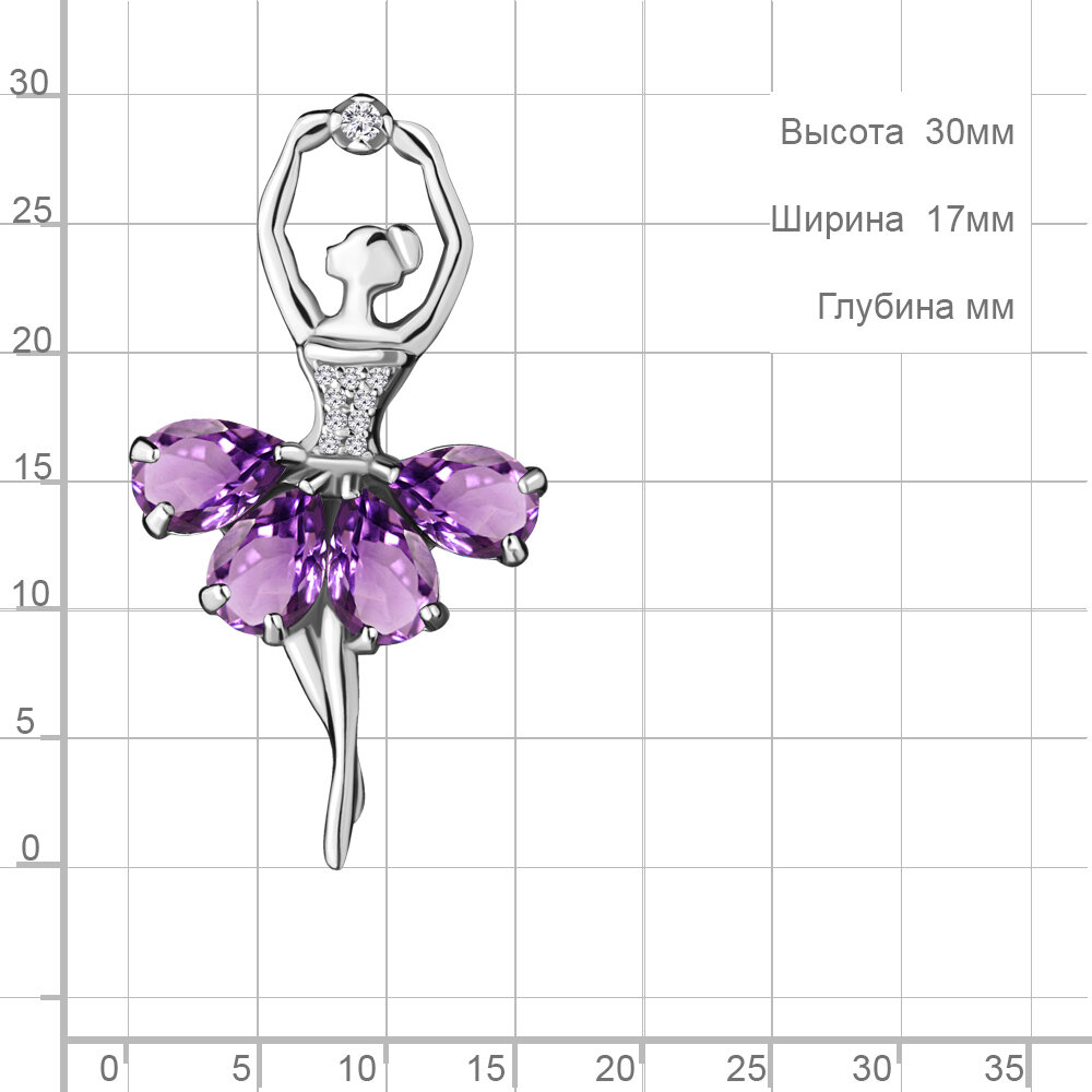 Серебряная брошь-подвеска Diamant online с аметистом и фианитом А7263304А информация:
