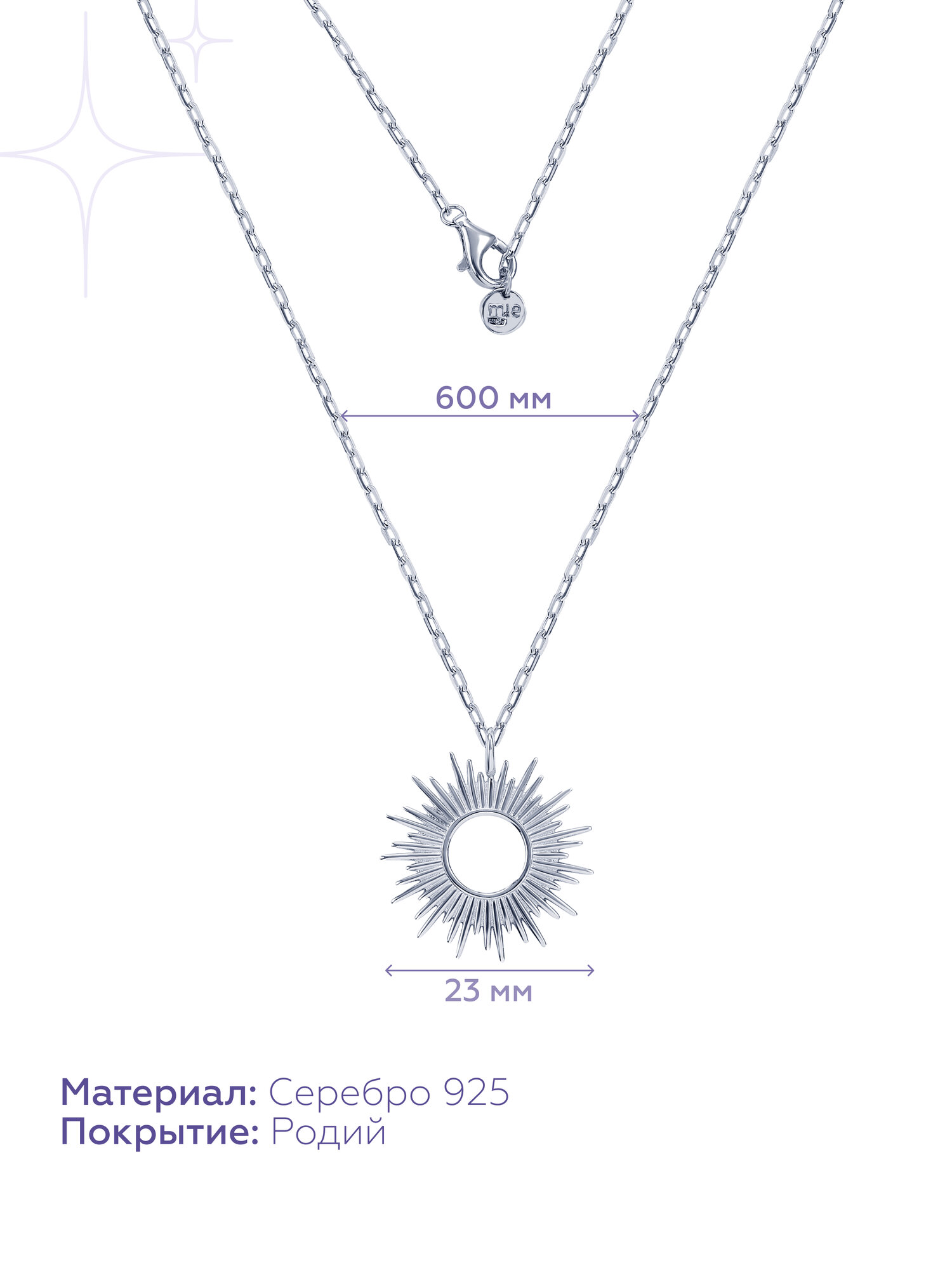 Колье MIESTILO на шею серебро 925 солнце информация: