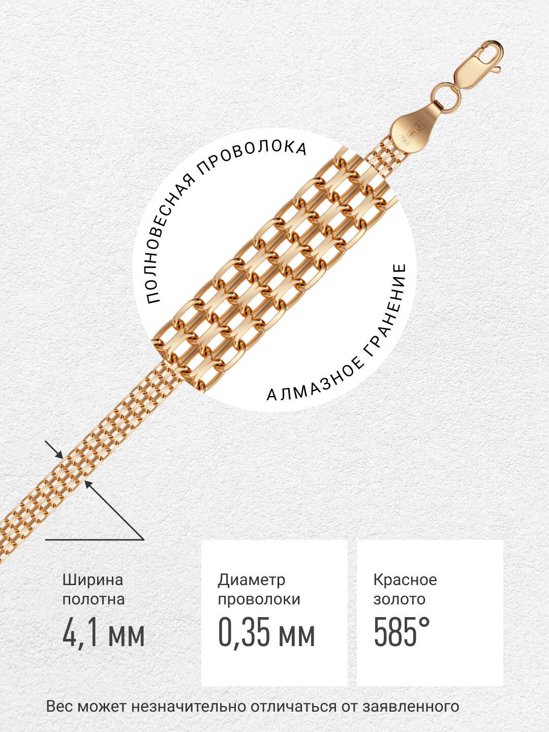 Золотая цепочка Krastsvetmet 585 пробы Двойной Бисмарк с алмазной гранью / Подарок мужчине, женщине, для себя / 40 см информация: