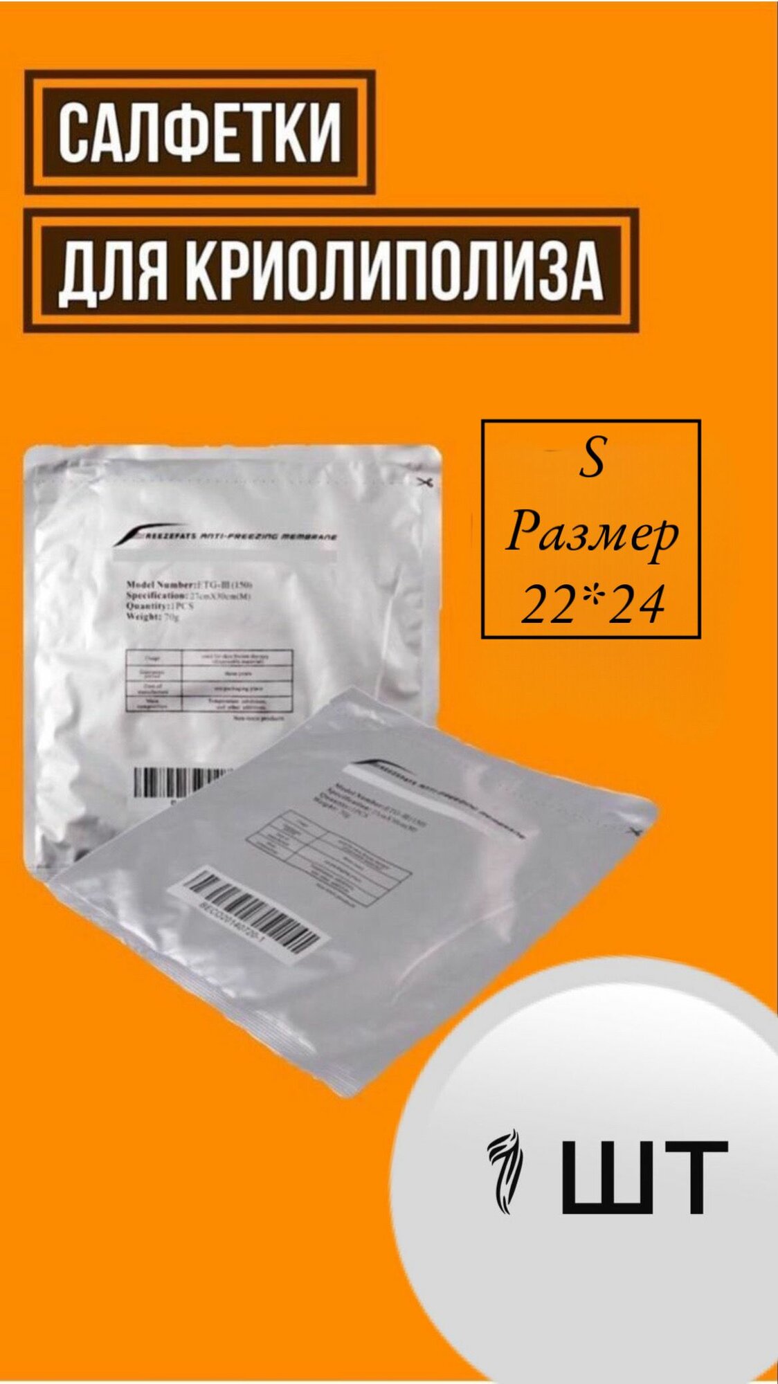 Салфетки для криолиполиза 22*24 см размер S информация: