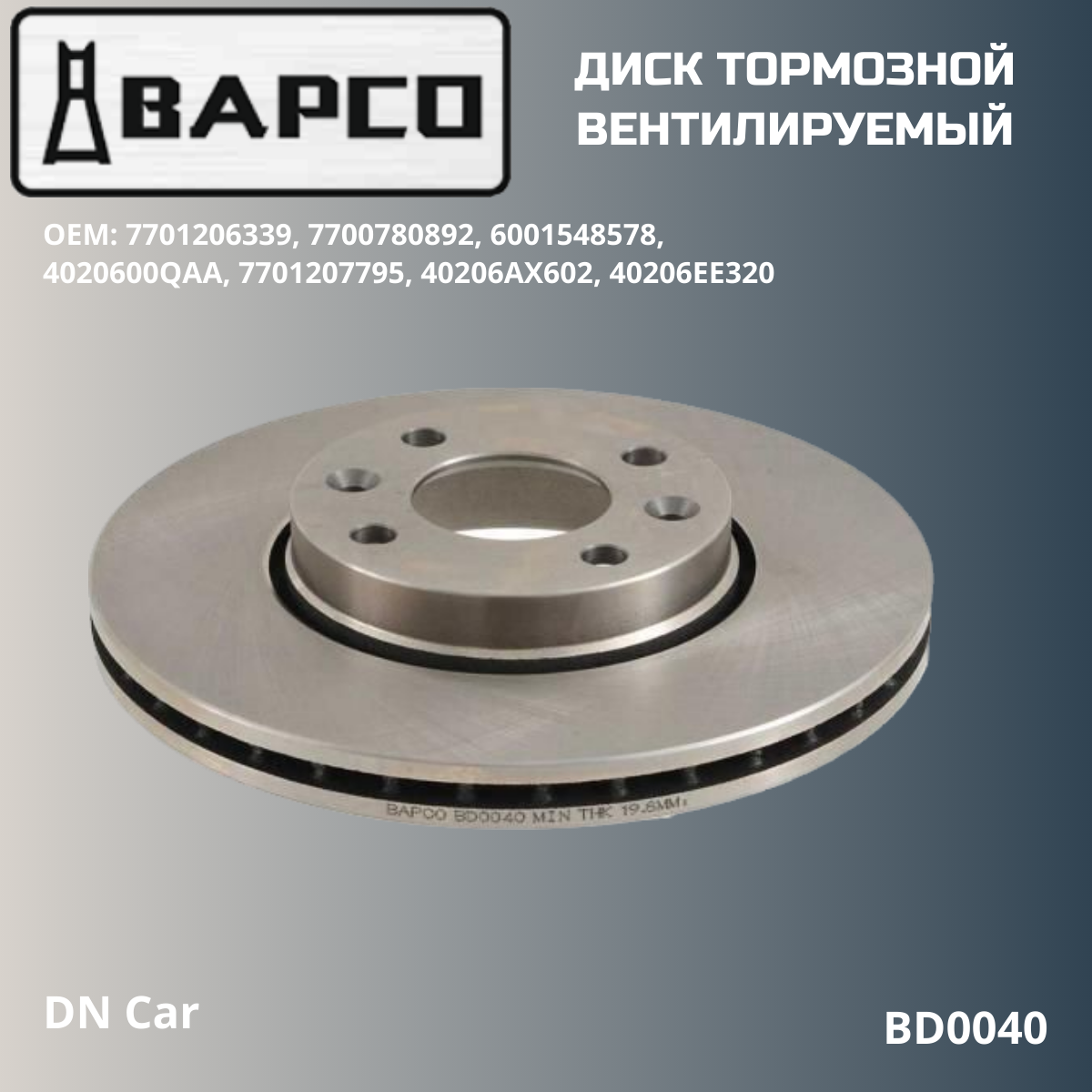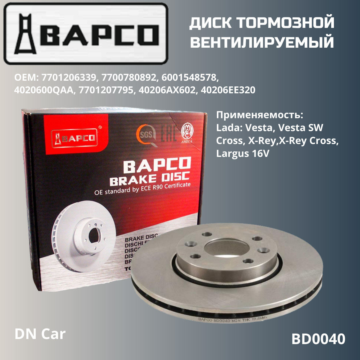 Диск тормозной передний "BAPCO" для Лада Веста, Веста СВ, Веста СВ Кросс, Ларгус 16V, Иксрей, BD0040 информация:
