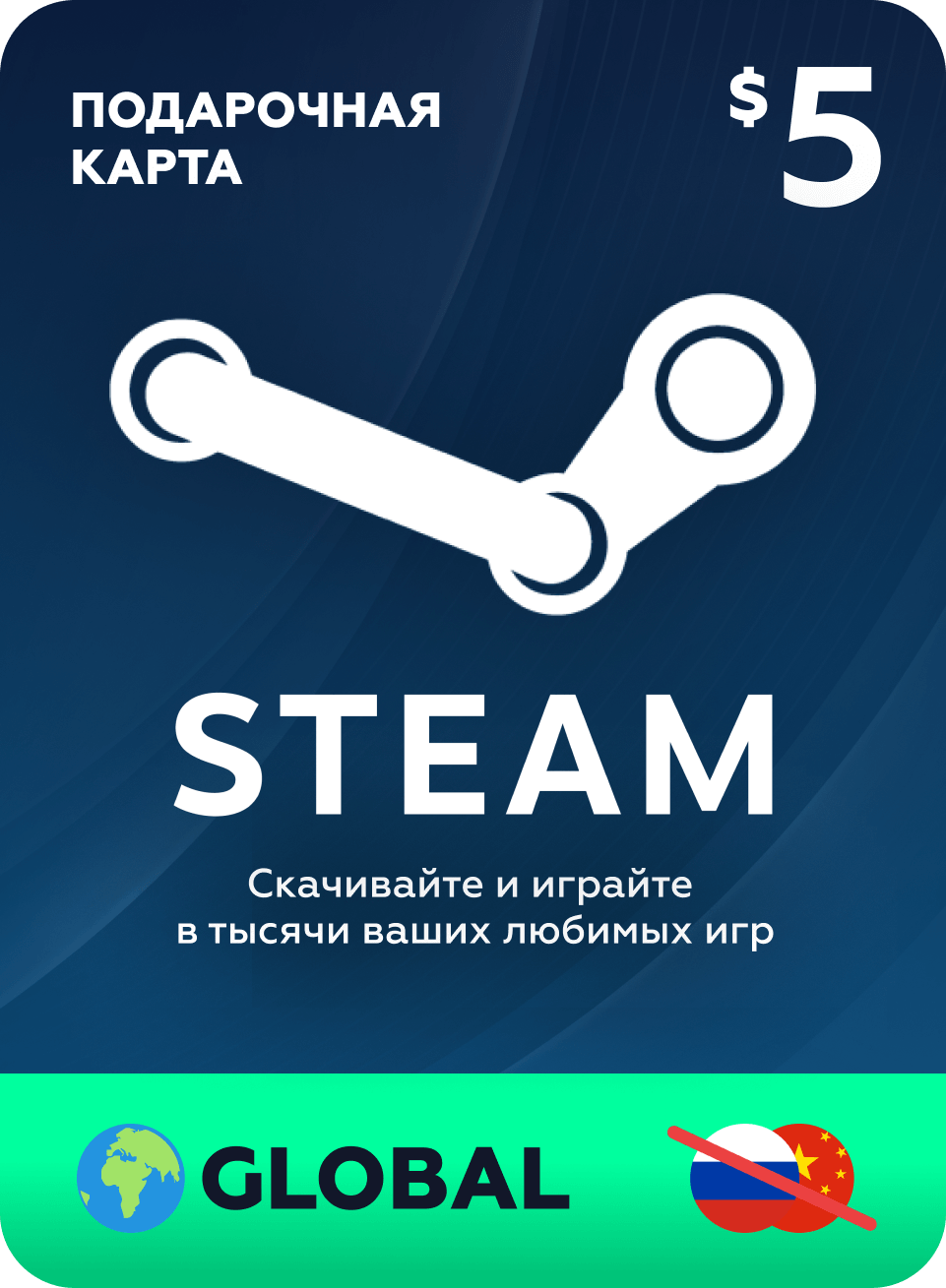 Пополнение кошелька Steam на 5 USD / Gift Card $5 Global (Глобальнй ключ активации) / не подходит для России и Китая информация: