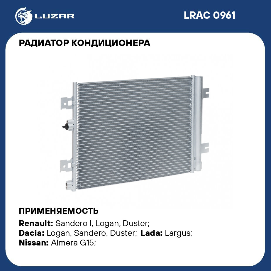 Радиатор кондиционера для автомобилей Лада Largus (12-)/Renault Logan (08-)/Duster (10-) LRAC 0961 LUZAR информация: