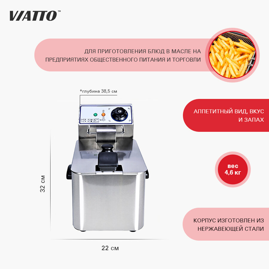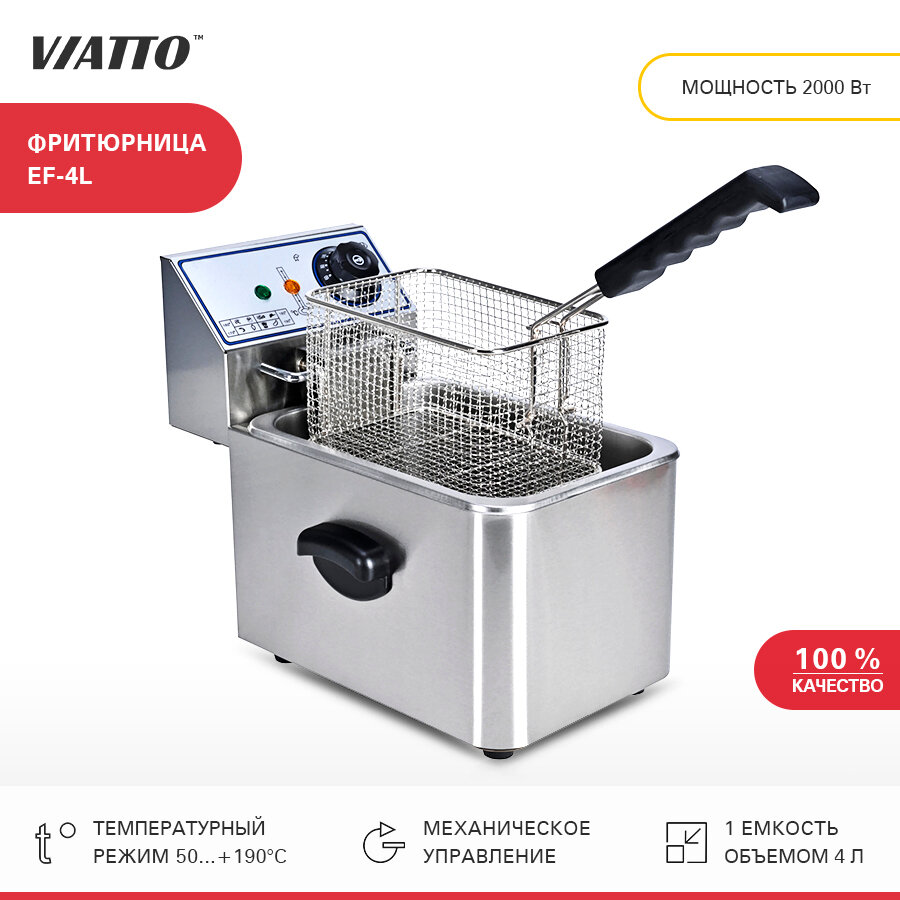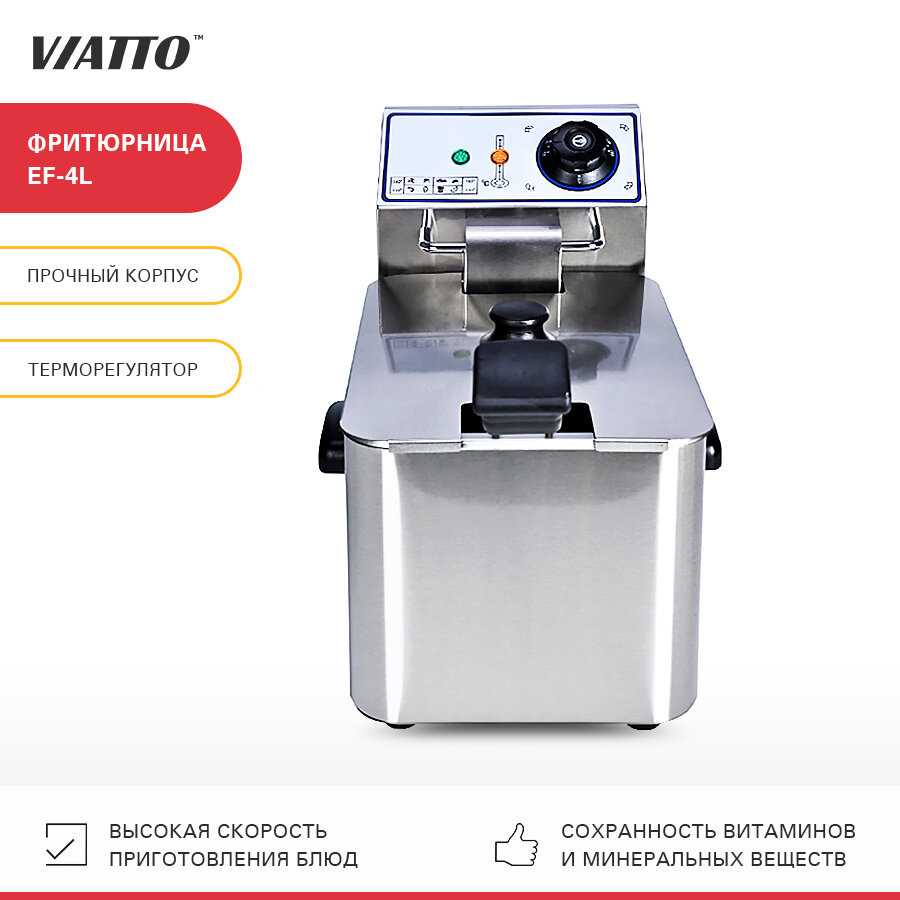 Фритюрница электрическая Viatto Commercial EF-4L, настольная электрофритюрница информация: