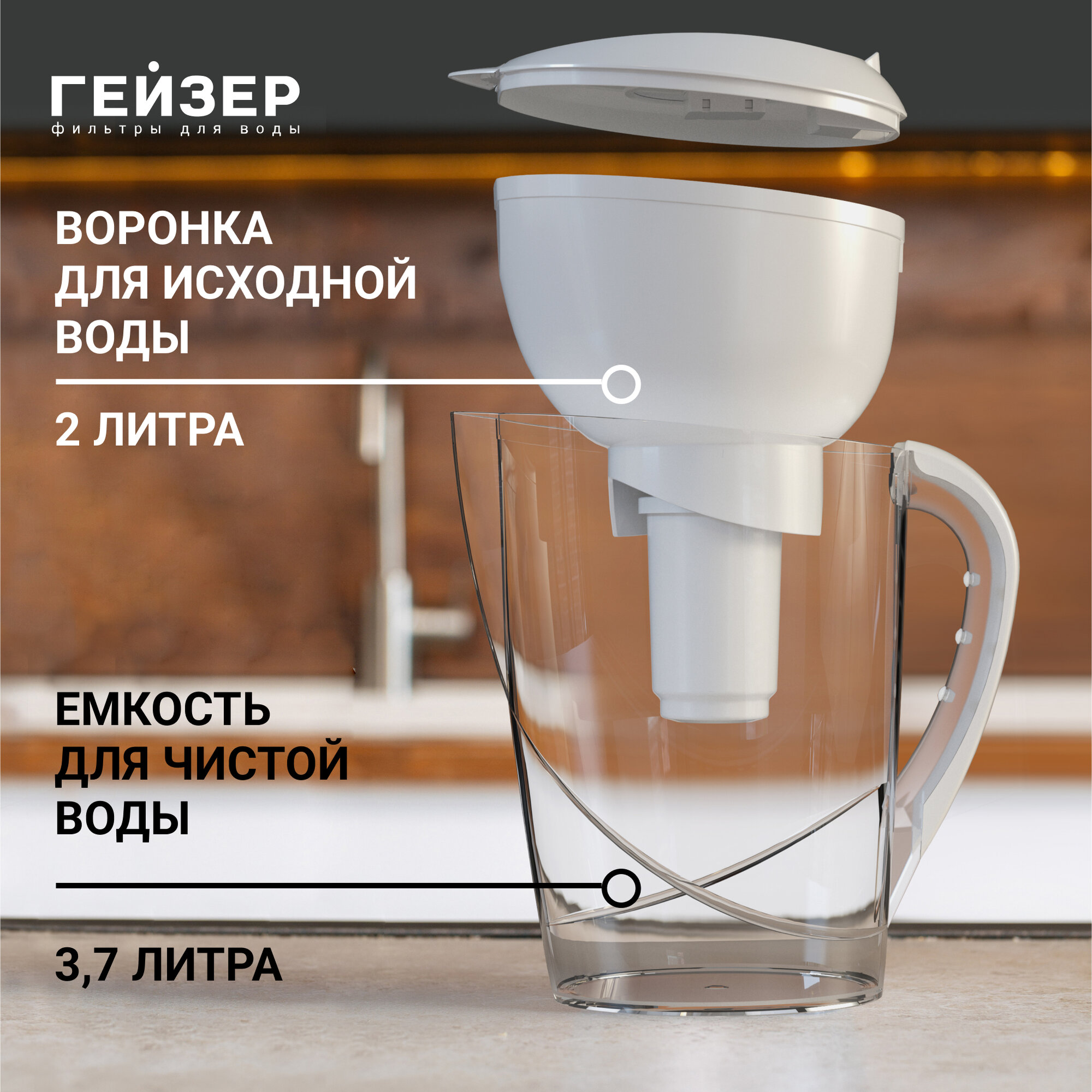 Фильтр-кувшин Гейзер Аквариус, белый, объем 3.7 л, картридж с материалом Каталон, 62025 информация: