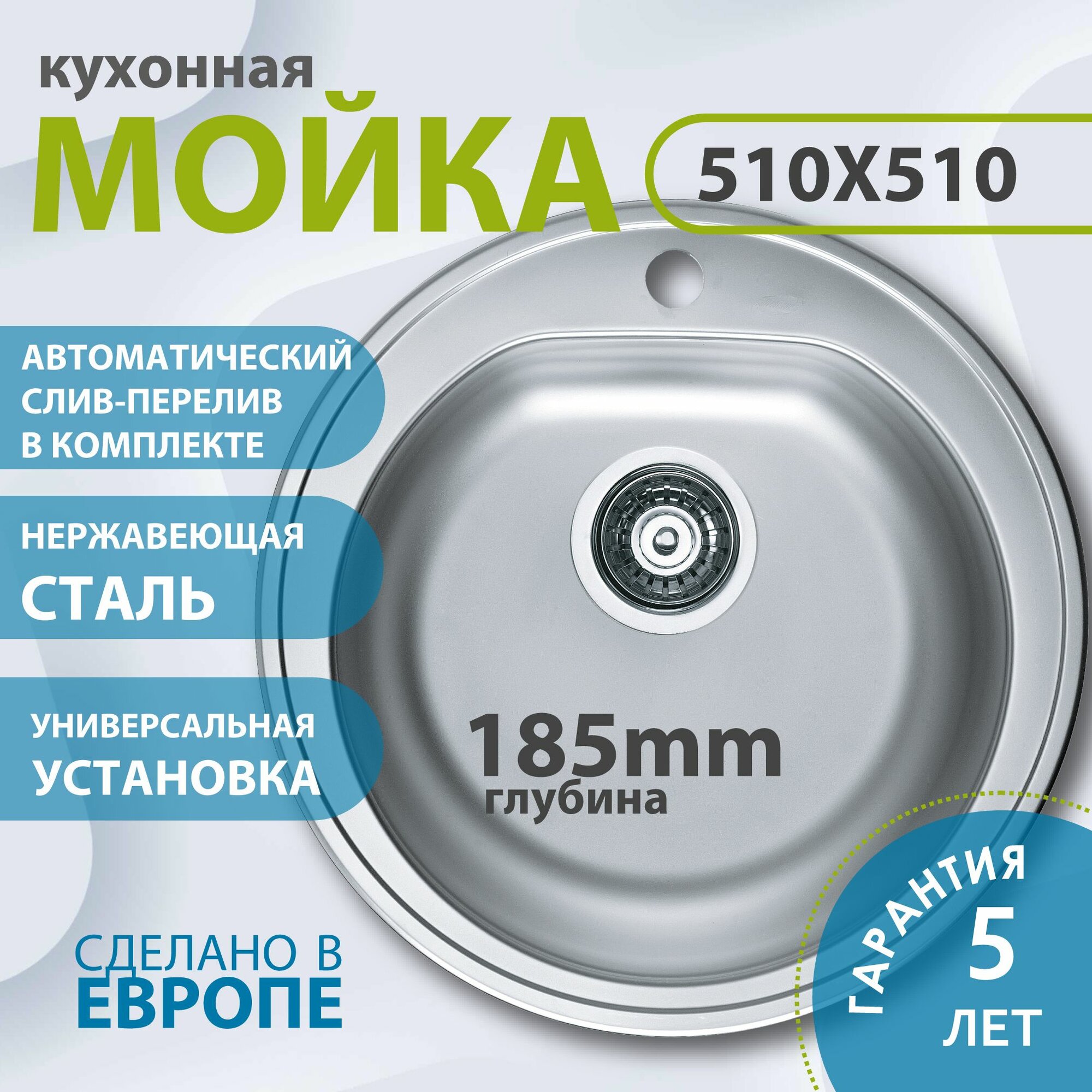 Мойка кухонная круглая Alveus Form 30 Нержавеющая сталь Satin (1116756) с сифоном 8 900 ₽