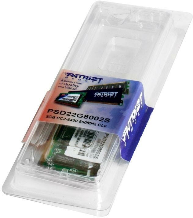 Оперативная память Patriot Memory SL 2 ГБ DDR2 800 МГц SODIMM CL6 PSD22G8002S информация: