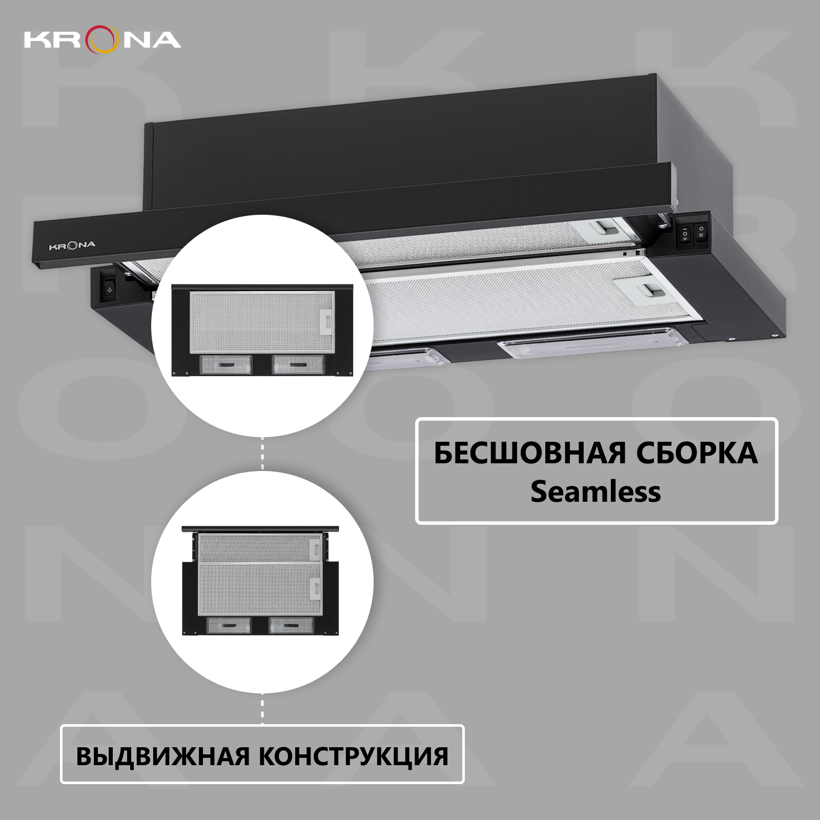 Встраиваемая вытяжка KRONASTEEL KAMILLA 600, черный (1 мотор) информация: