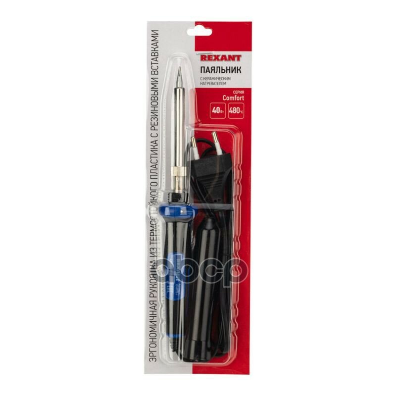 Паяльник REXANT 40 Вт с керамическим нагревателем и долговечным жалом