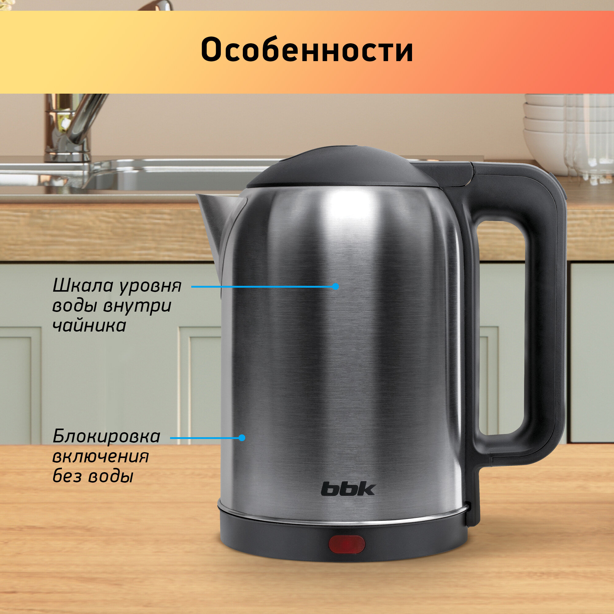 Чайник электрический BBK EK1809S 1,8 л, 1800-2000 Вт, серебристый/черный информация: