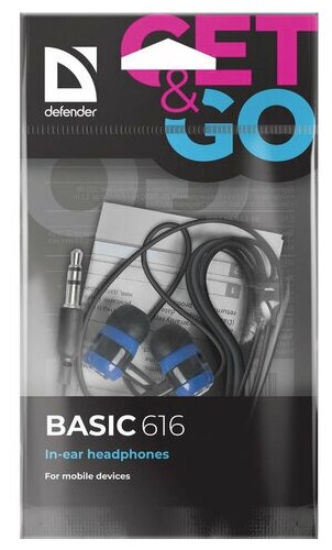 Наушники вставки DEFENDER Basic 616 черный/синий [10mm, 20Гц~20kГц, 32 Ом, 1.1 м]
