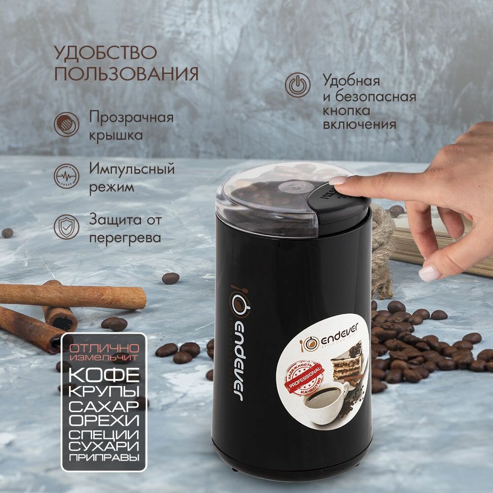10 цен на Кофемолка электрическая Endever Costa-1054/ 250 Вт/ на 100 грамм кофе