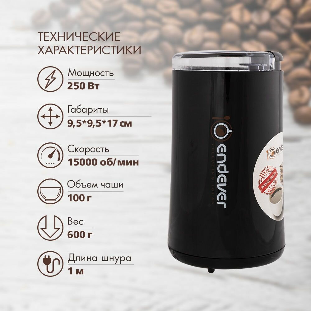 Кофемолка электрическая Endever Costa-1054/ 250 Вт/ на 100 грамм кофе информация: