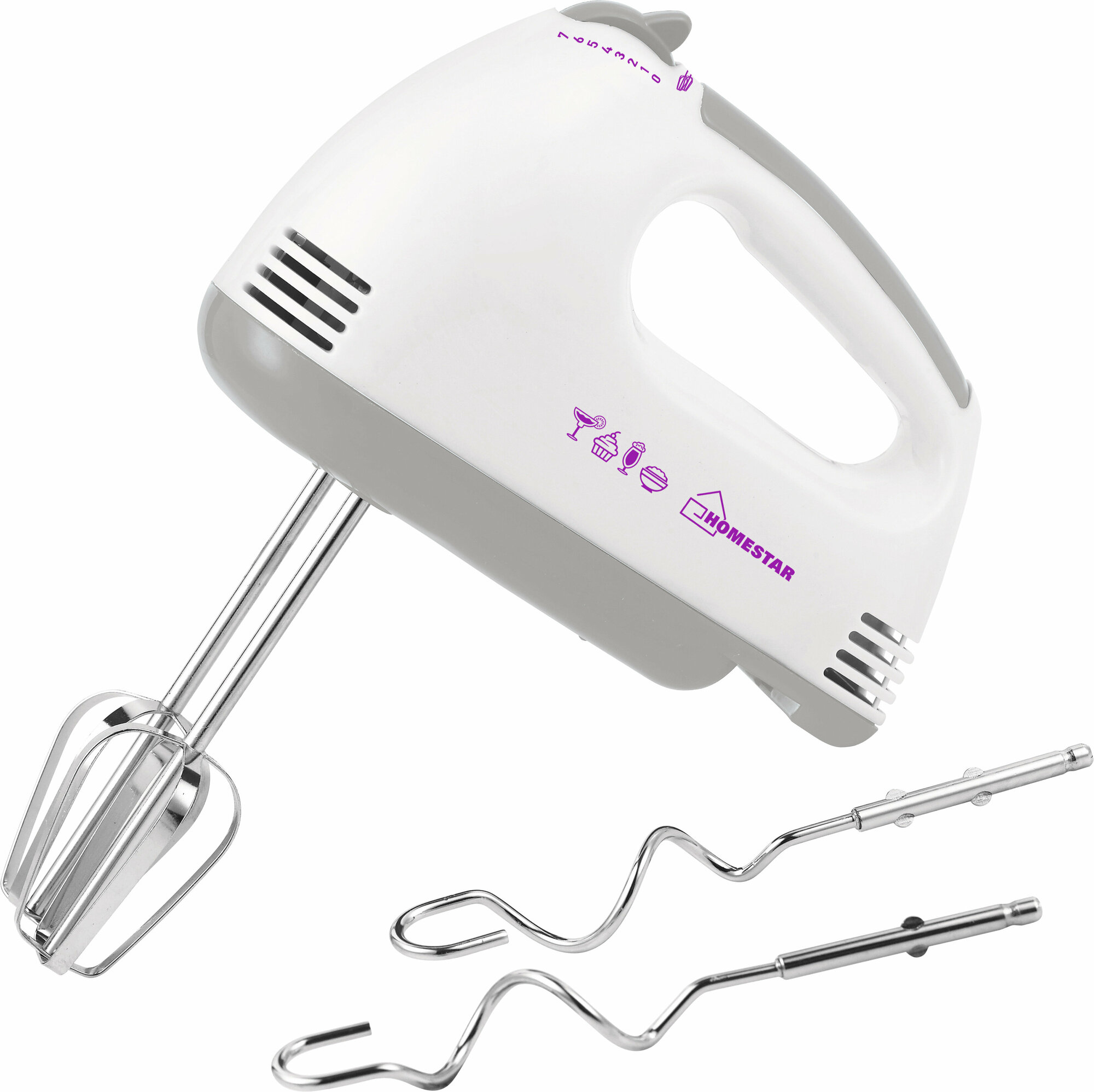 Миксер Homestar, арт. HS-2004, белый/серый, 7 скоростей, 100Вт
