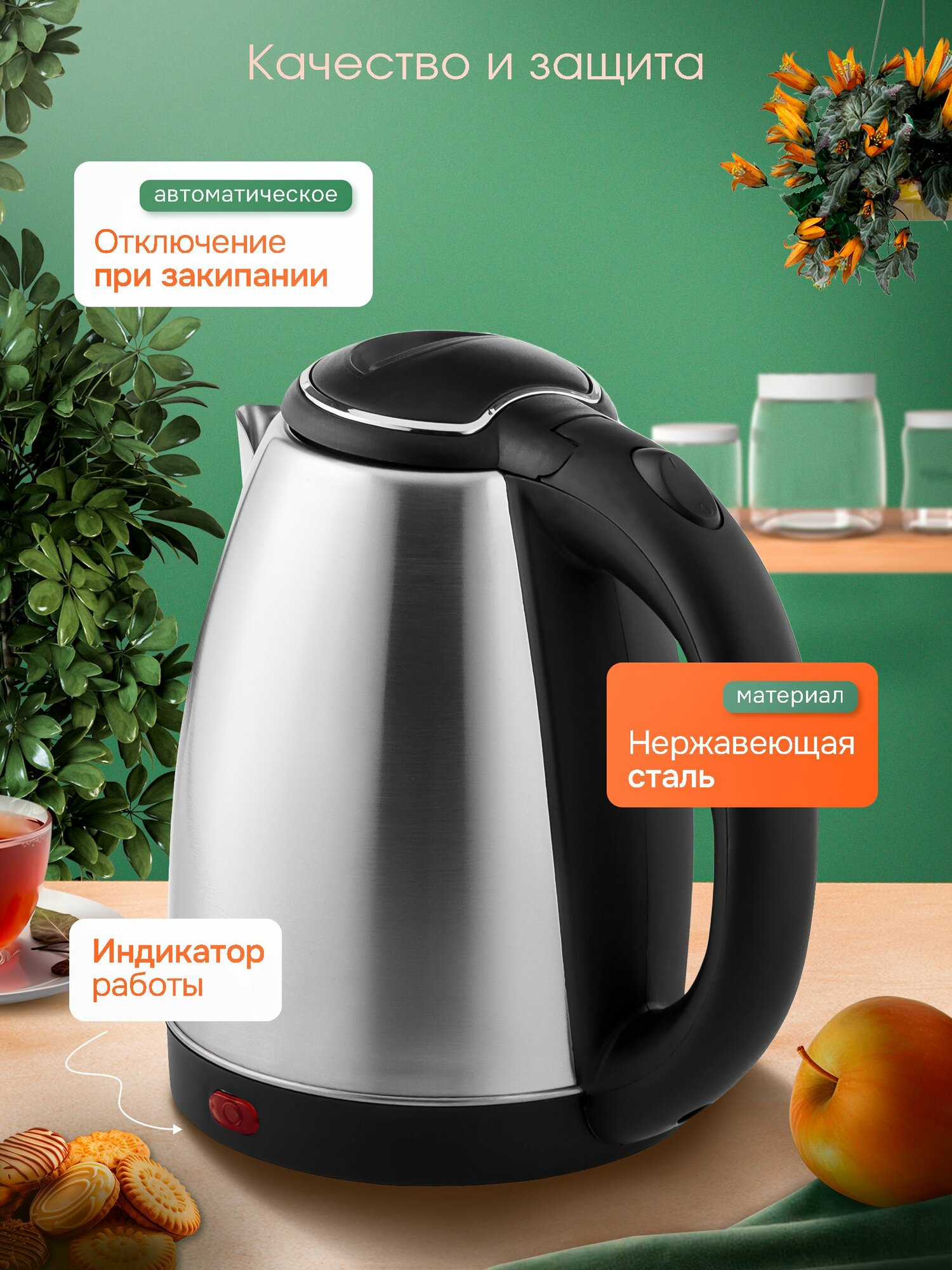 Чайник электрический 1,8 л, 1500 Вт, скрытый нагревательный элемент, нержавеющая сталь, 220 В информация: