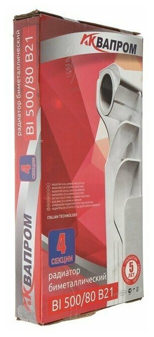 Секционный радиатор аквапром BI 500/80 B21 4 секции 00-00016990, белый информация: