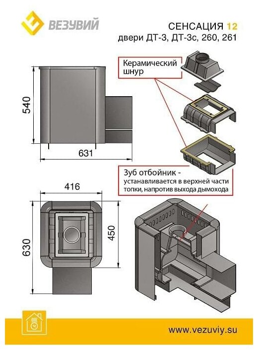 Печь для бани дровяная везувий Сенсация 12 Антрацит (ДТ-3) информация: