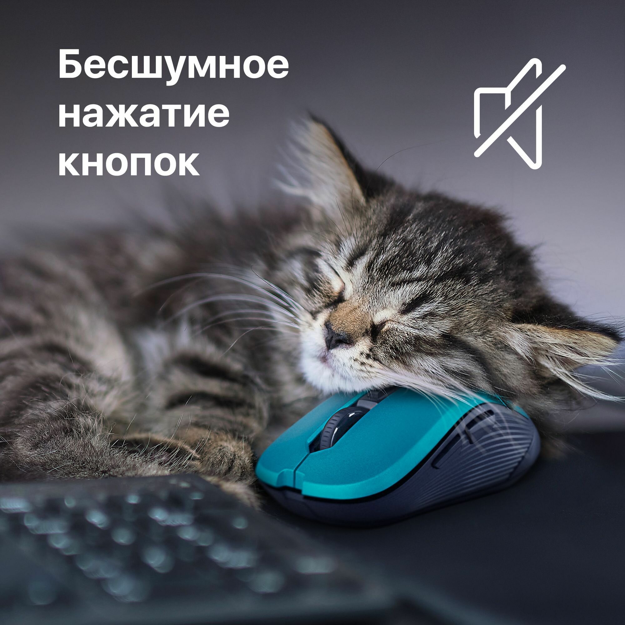 Мышь Defender Gassa MM-105 silent, бирюзовый (52102) оптический, 1600 dpi, радиоканал информация: