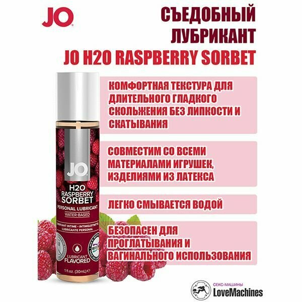 Съедобный лубрикант со вкусом малины «JO H2O Raspberry Sorbet» 30 мл