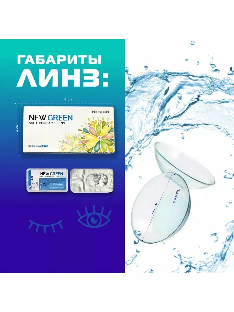 Линзы контактные new green -6,0 3мес гидрогелевые 2 линзы + контейнер в подарок