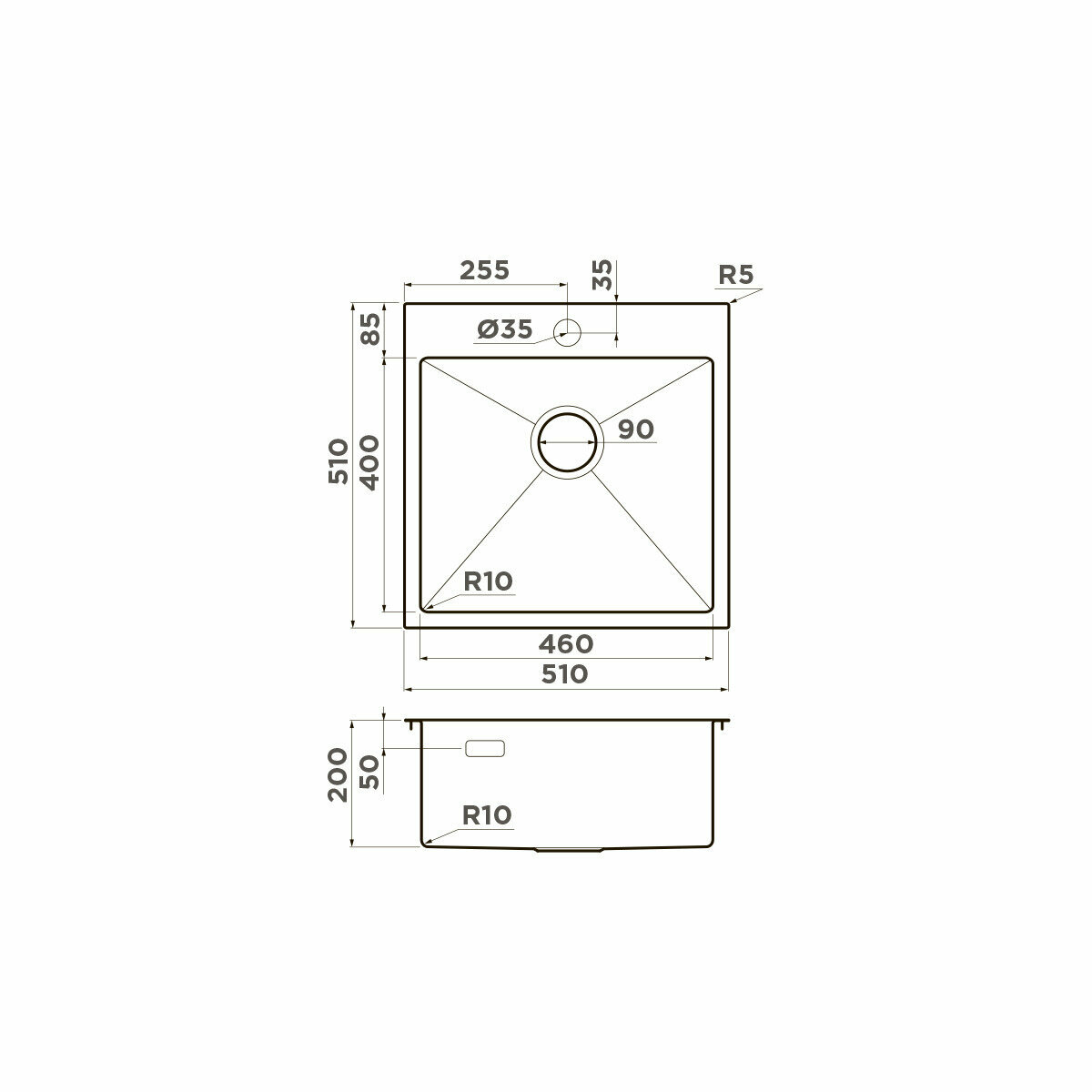 Кухонная мойка OMOIKIRI Akisame 51-IN 51х51см нерж.сталь/нержавеющая сталь