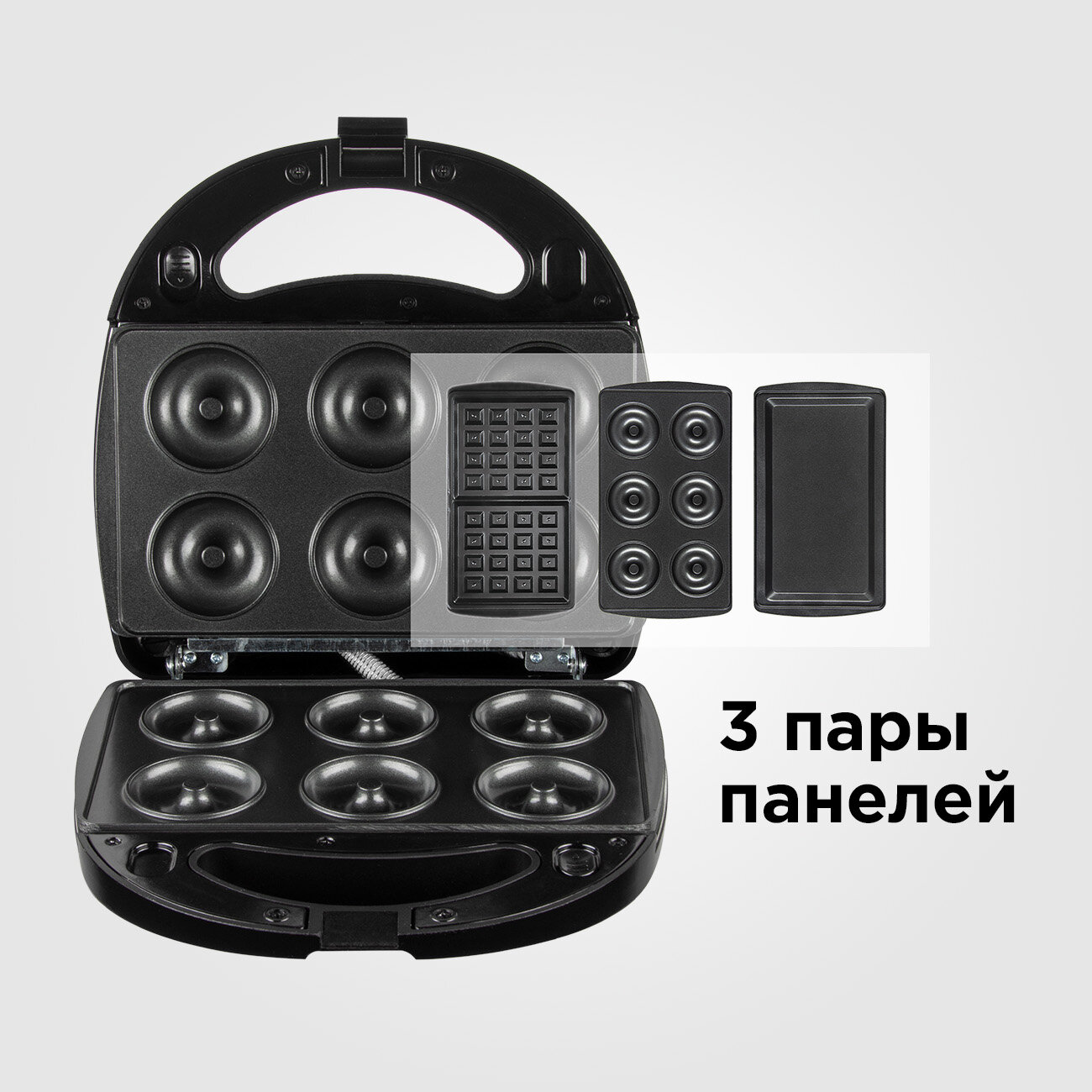 Мультипекарь, мощность 700 Вт, 3 комплекта съемных панелей REDMOND RMB-611 черный
