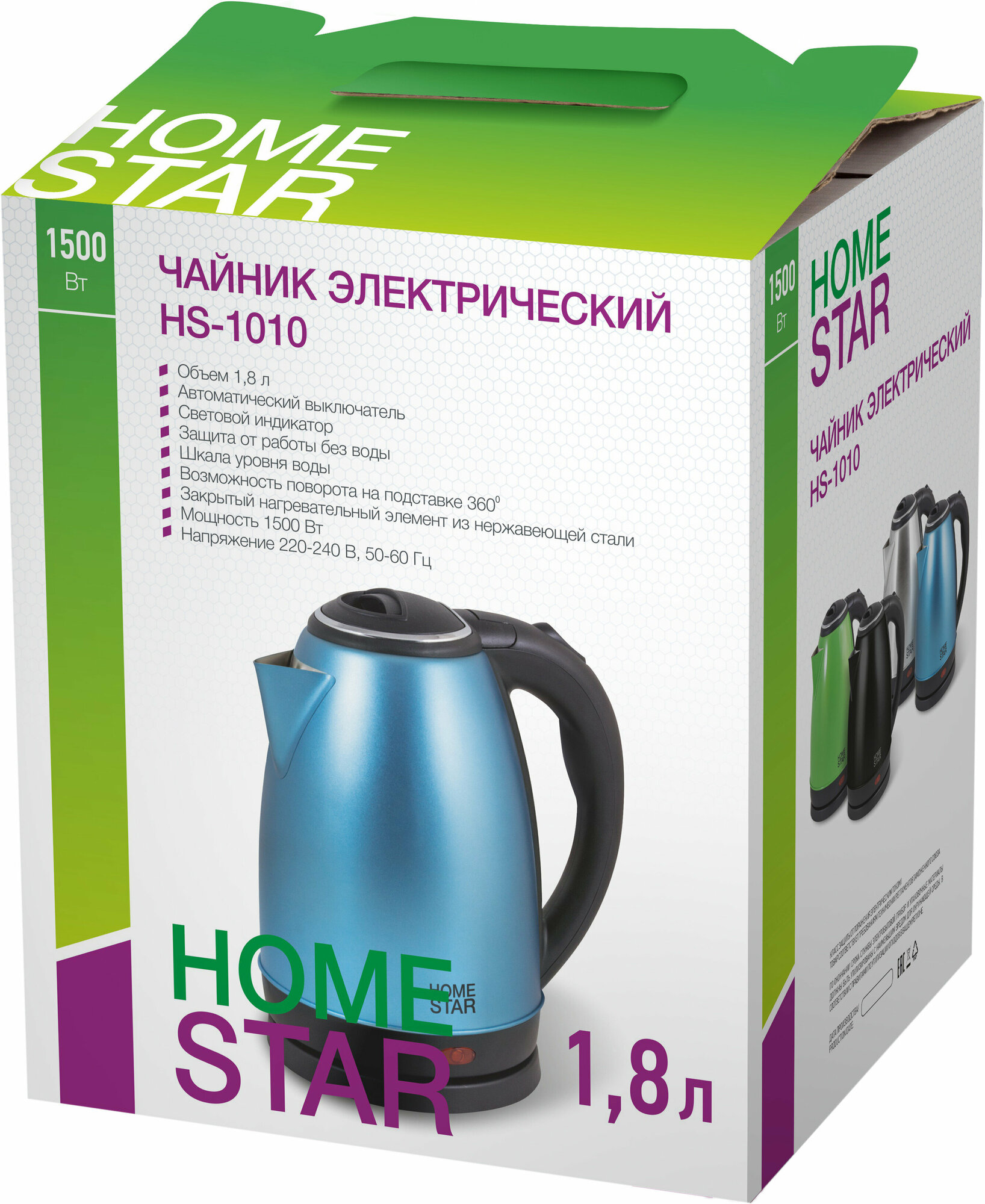 Чайник электрический HOMESTAR HS-1010 1,8л нержавейка синий информация: