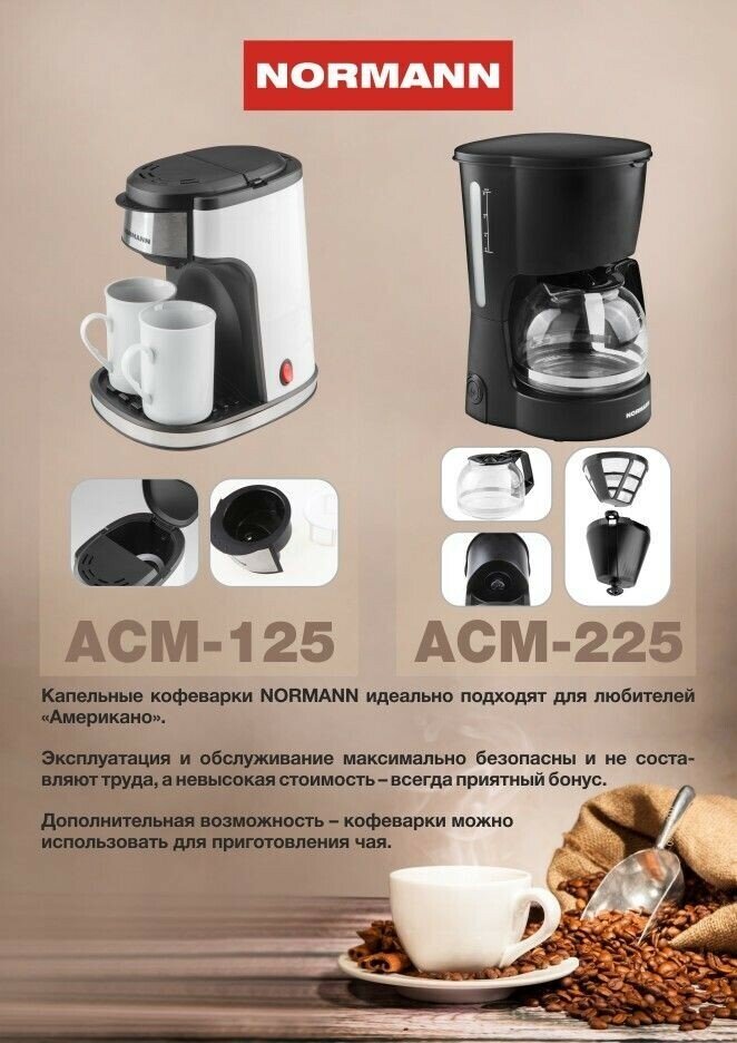 Комплект 2 штук, Кофеварка ACM-225 NORMANN (капельная, 600 Вт, 600 мл)