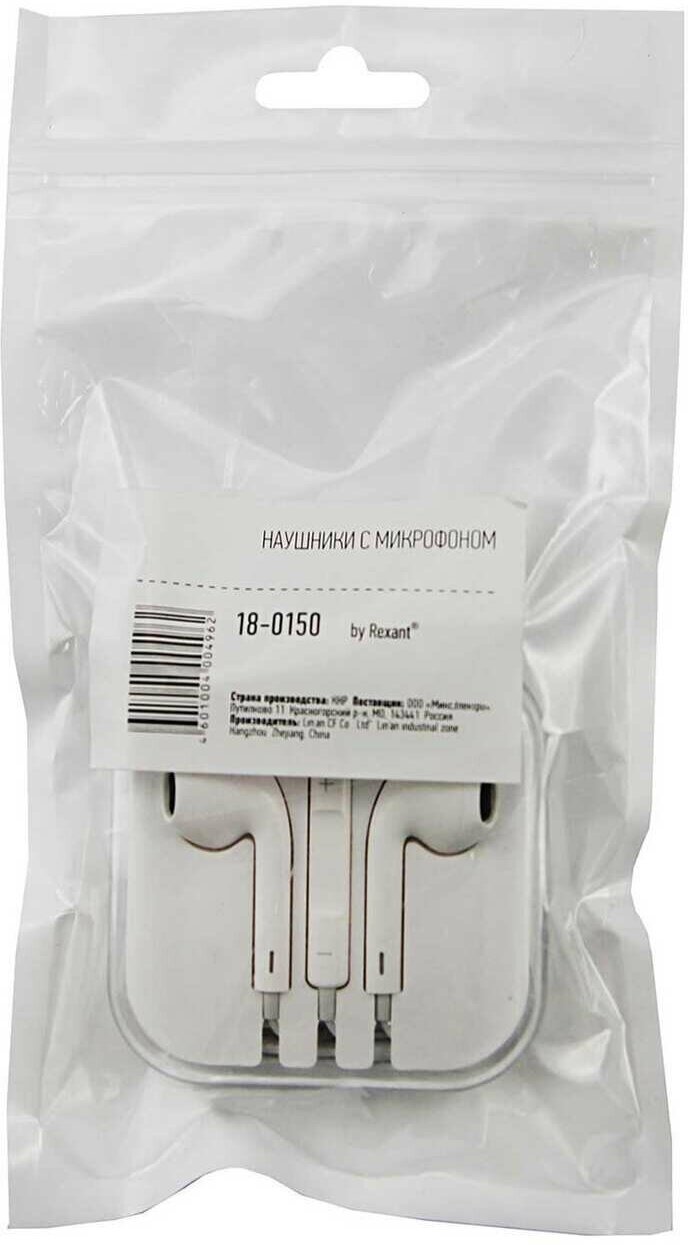 Наушники с микрофоном Rexant, проводные, Jack 3,5мм, цвет белый информация: