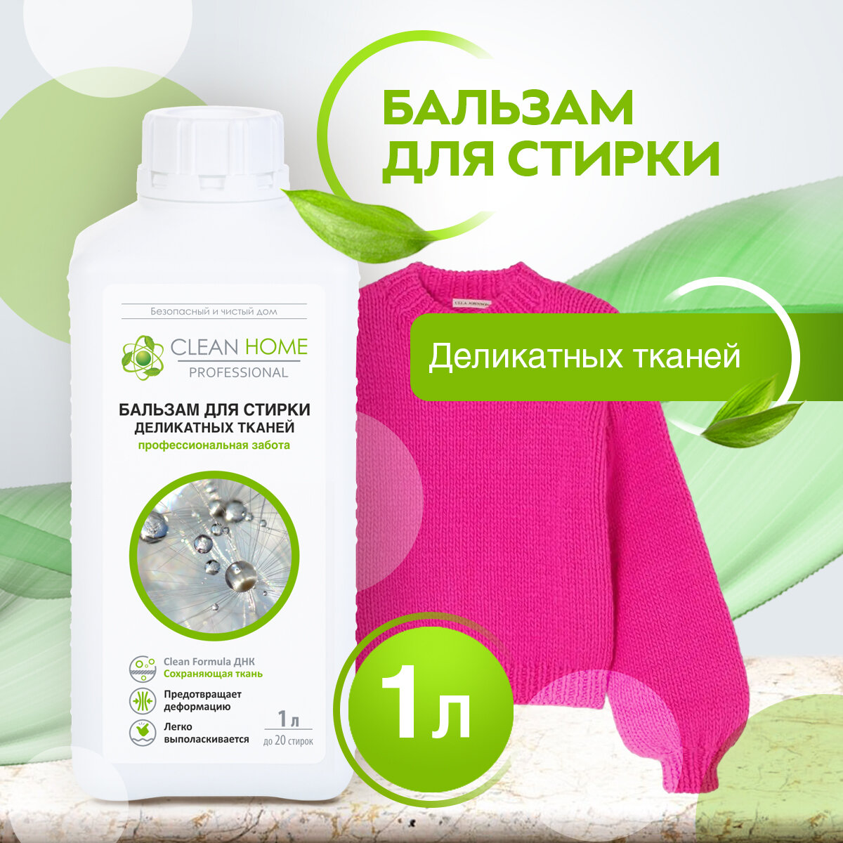 Бальзам для стирки деликатных тканей CLEAN HOME 1л