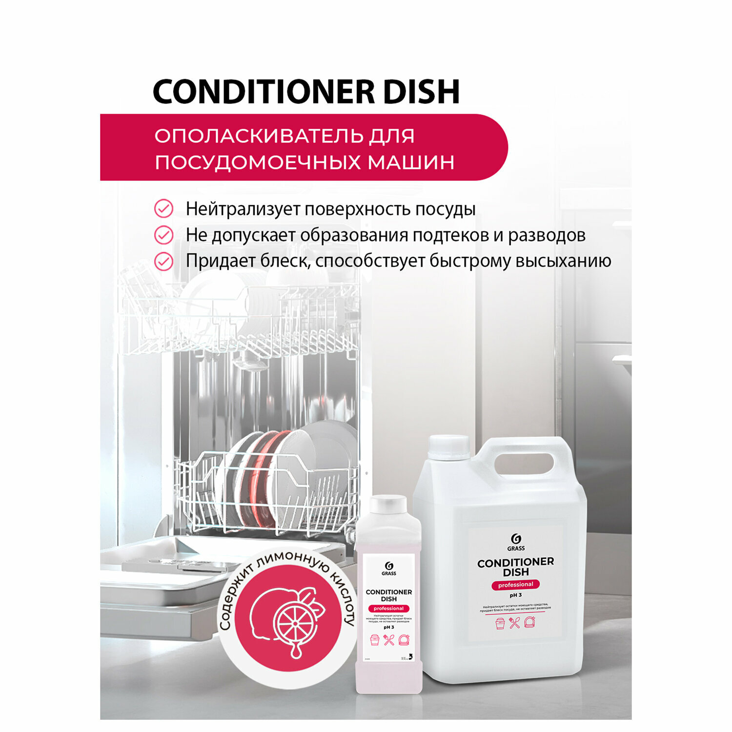 Отзывы на Средство для мытья посуды в посудомоечных машинах 5 кг GRASS CONDITIONER DISH, ополаскиватель, кислотное, концентрат, 216101