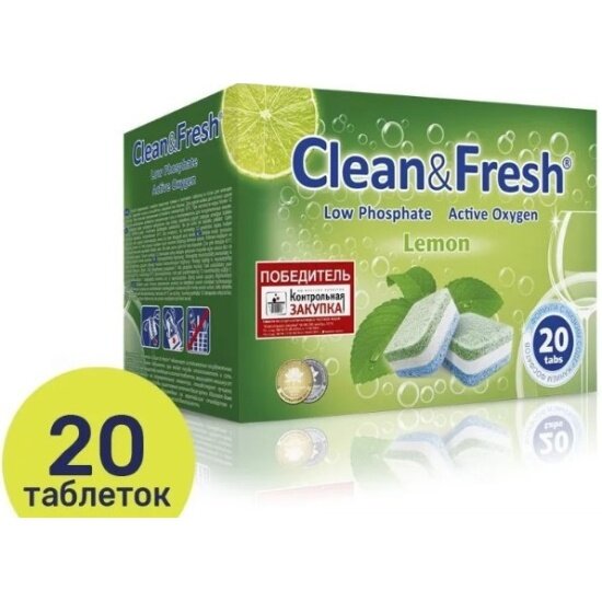 Таблетки для посудомоечных машин Clean & Fresh CLEAN&FRESH All in 1, 20 шт информация:
