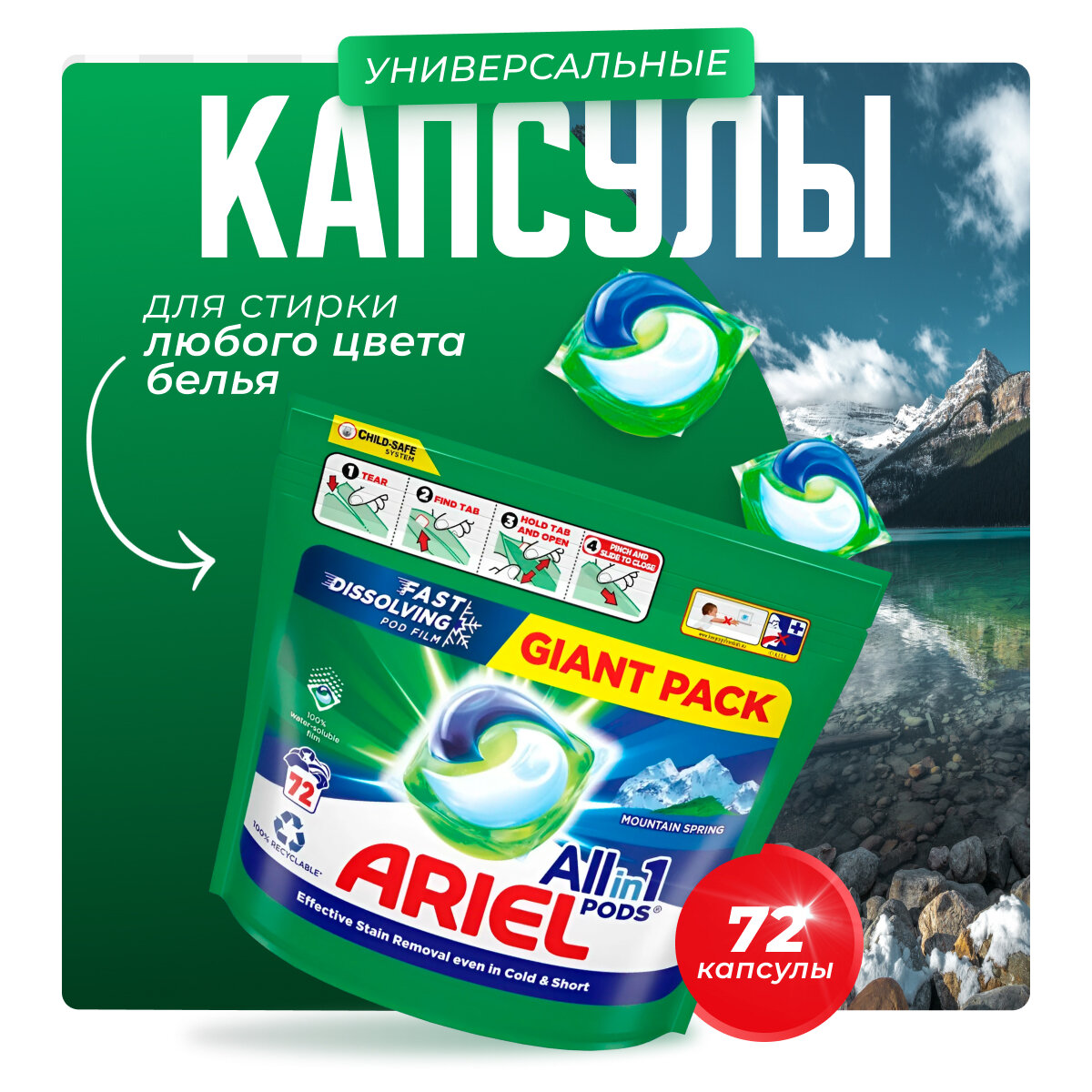 Капсулы для стирки Ariel Все в 1 Pods Горный родник (72 шт) информация: