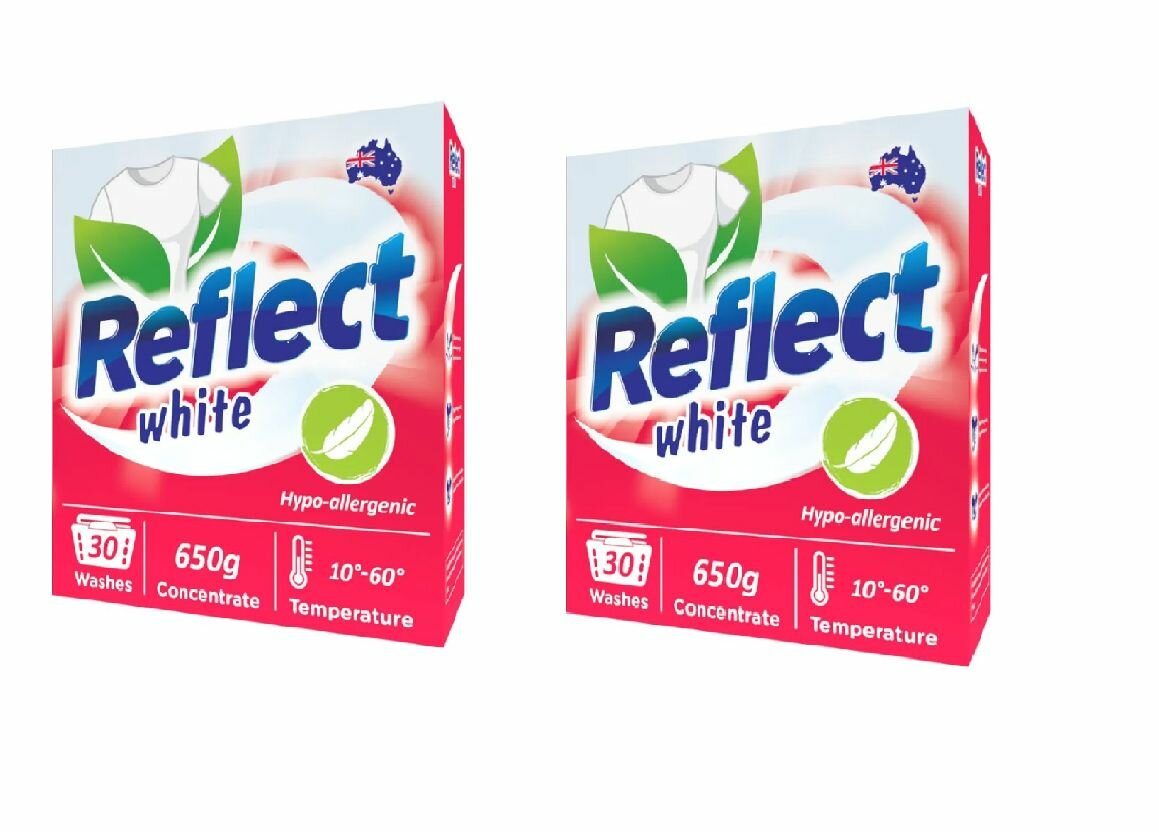 Концентрированный стиральный порошок Reflect white для стирки белого и светлого белья, комплект 2 пачки по 650 г