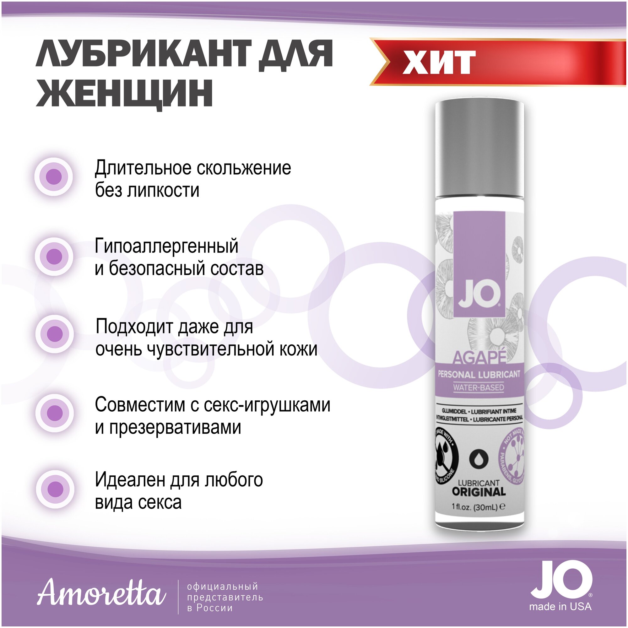 Лубрикант на водной основе для женщин JO Agape Original - 30 мл. JO41041 информация: