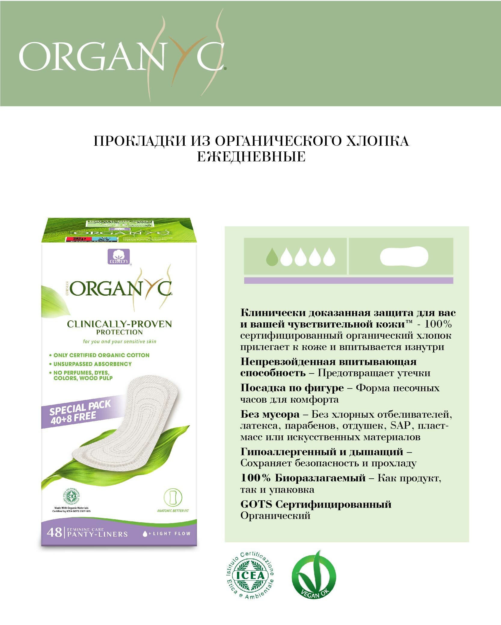Прокладки на каждый день. Organyc, 48 шт., 1+ капля информация: