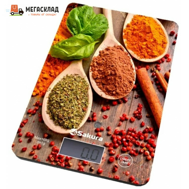 Весы кухонные Sakura SA-6077DS электронные до 8кг "Специи на тёмном"