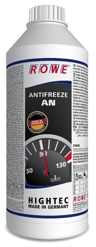 ROWE 21010005099 Антифриз ROWE HIGHTEC ANTIFREEZE AN G11 (5л) ASTM D3306/D4985,AFNOR NF R 15-601,BS 6580,SAE J1034,BMW N60069.0,Deutz DQC CA-14,MAN 324 NF/Pritader,MB 325.0,MTU MTL 5048,Opel/GM B 040 0240,VW TL 774-C (G11)BMW 83 19 2 211 195,JIS K 2234