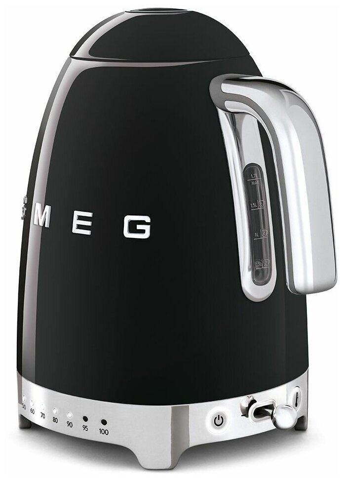 Электрический чайник Smeg Стиль 50-х г., чайник электрический, 1.7 л, 2400 Вт, корпус из нержавеющей стали, черный KLF04BLEU