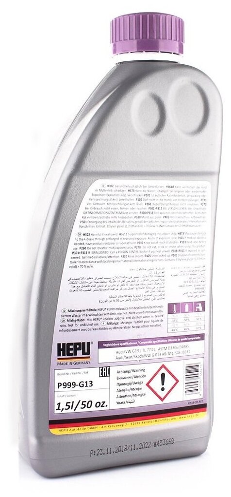 Hepu Антифриз G13 * 1.5L Концентрат Фиолетовый Vw Hepu арт. P999G13 информация: