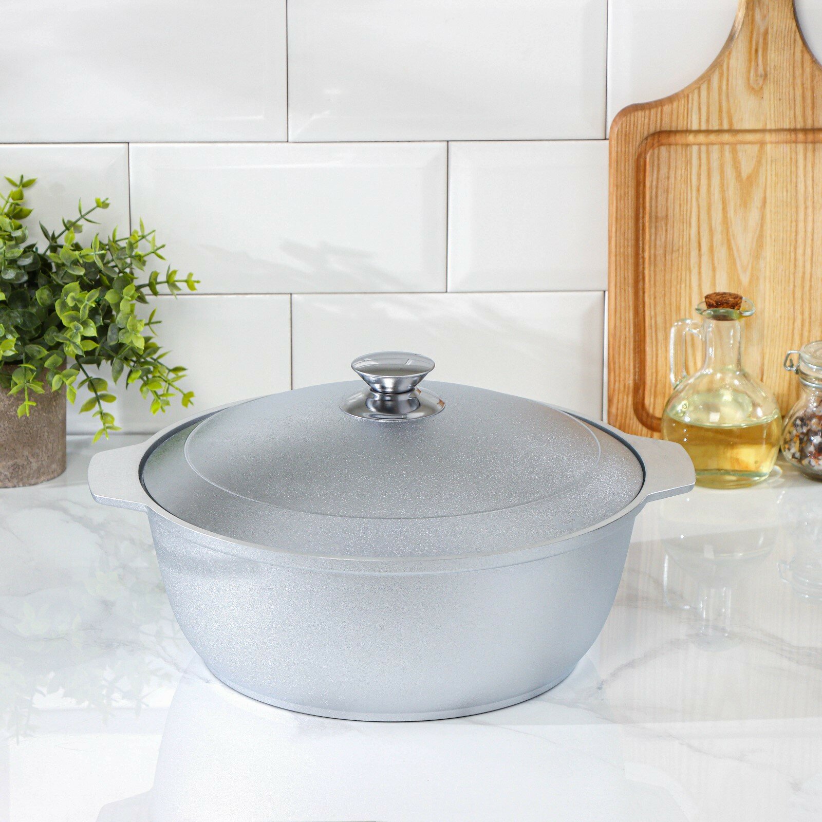Белая калитва Кастрюля, 6 л, полусферическая, металлическая крышка, цвет хромированный