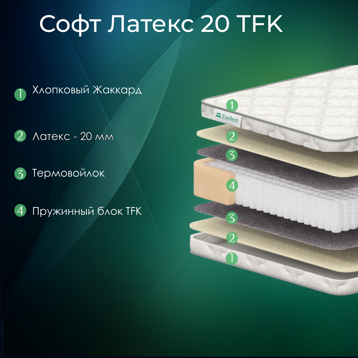 Матрас Everest Софт Латекс 20 Tfk (165 / 200) 35 676 ₽