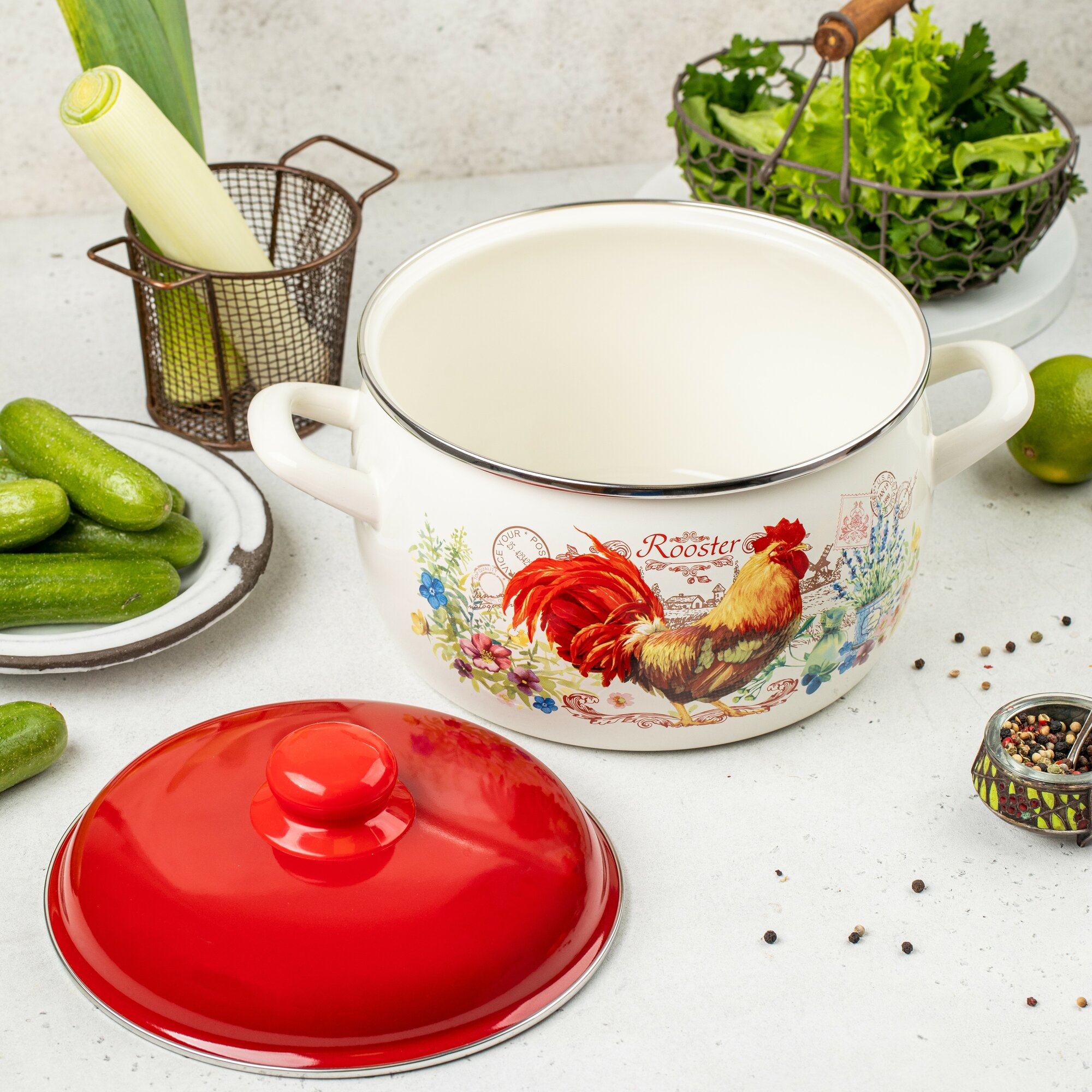 10 цен на кастрюля METROT Золотой петушок 7,5л 24см эмалированная сталь