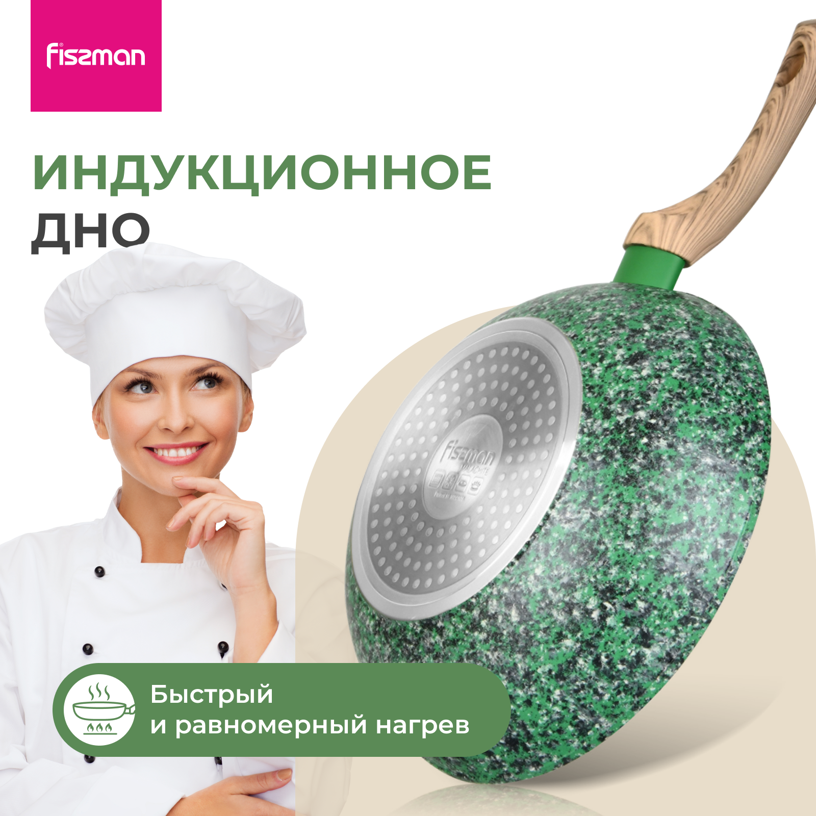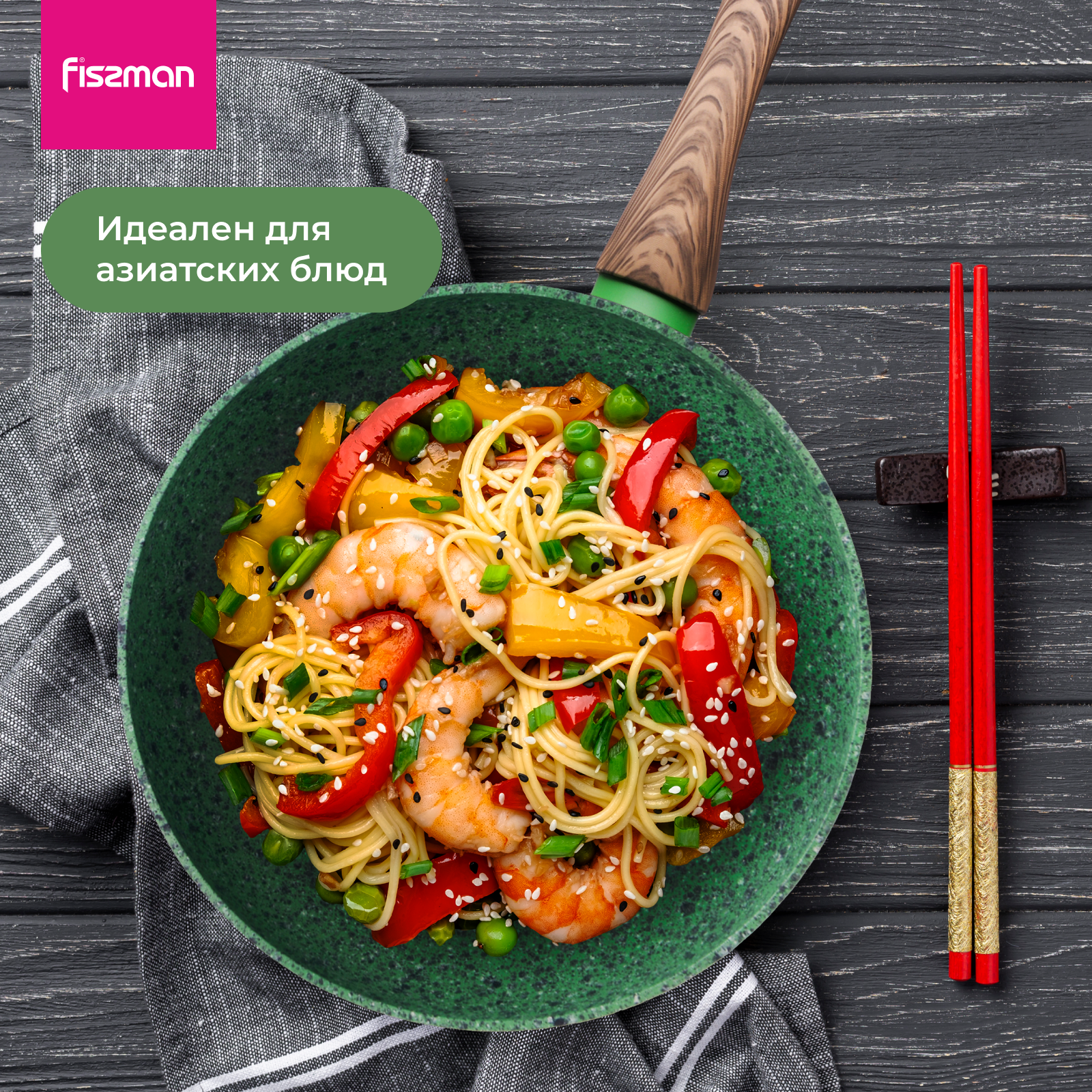 Сковорода-вок с антипригарным покрытием Fissman Malachite, 28 см, подходит для индукционных плит информация:
