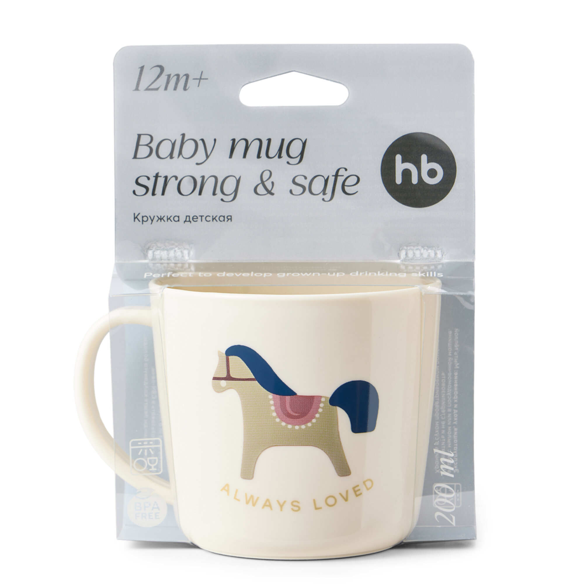 10 цен на 15006, Кружка детская ударопрочная Happy Baby, для малышей, с надписью, пластиковая, чашка, 200мл, бежевая с лошадкой